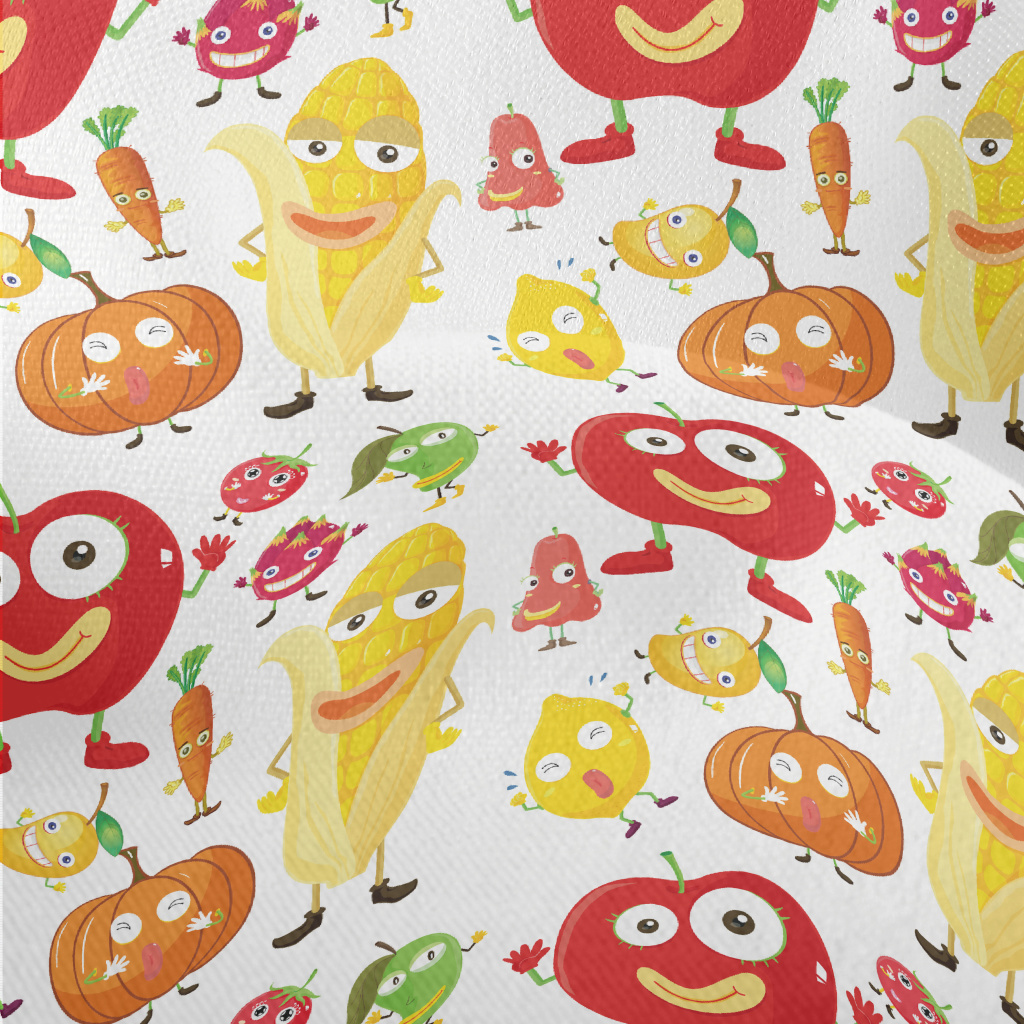 搞怪大眼蔬果們竹節麻(幅寬150公分)
