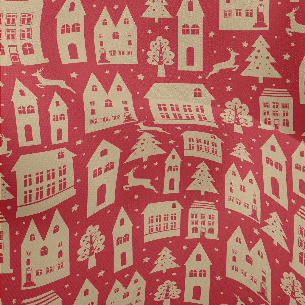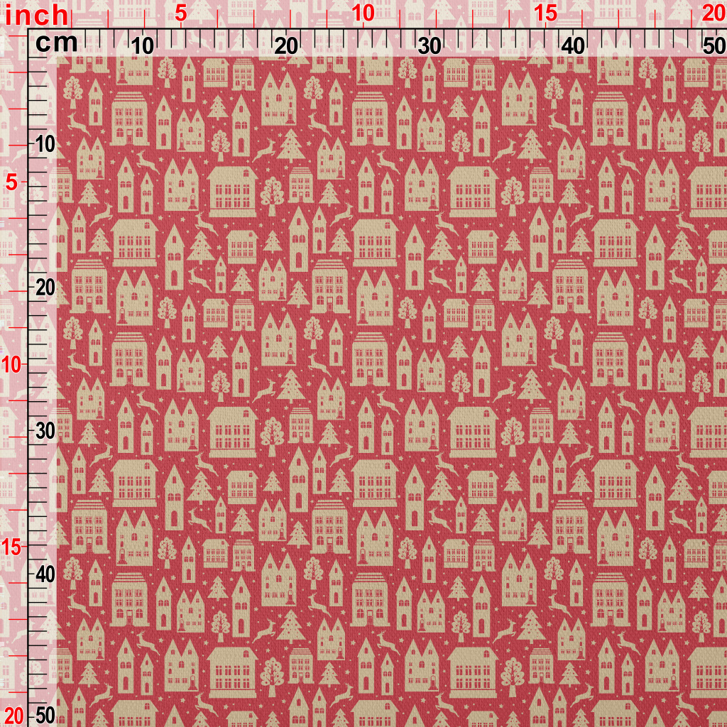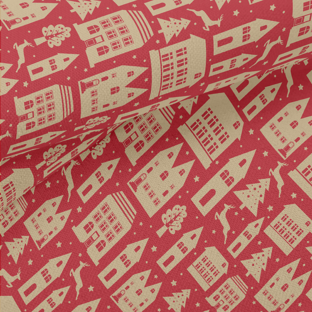 小巧溫馨聖誕房屋竹節麻(幅寬150公分)