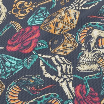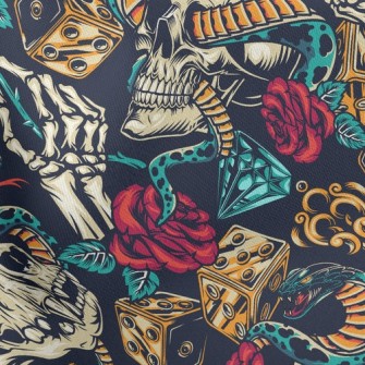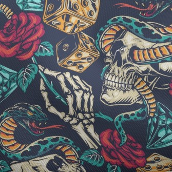 恐怖骷髏玫瑰蛇竹節麻(幅寬150公分)