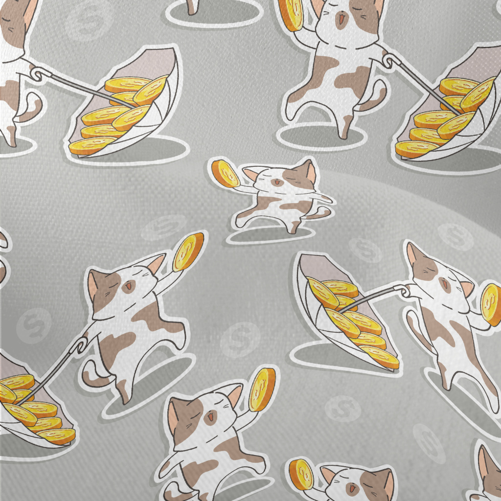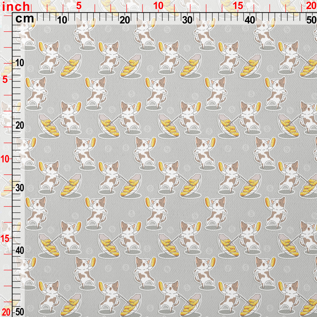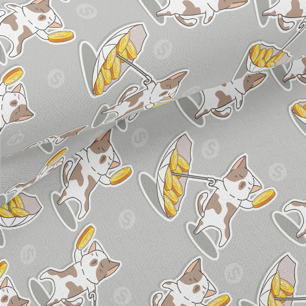 跳舞錢幣貓咪竹節麻(幅寬150公分)