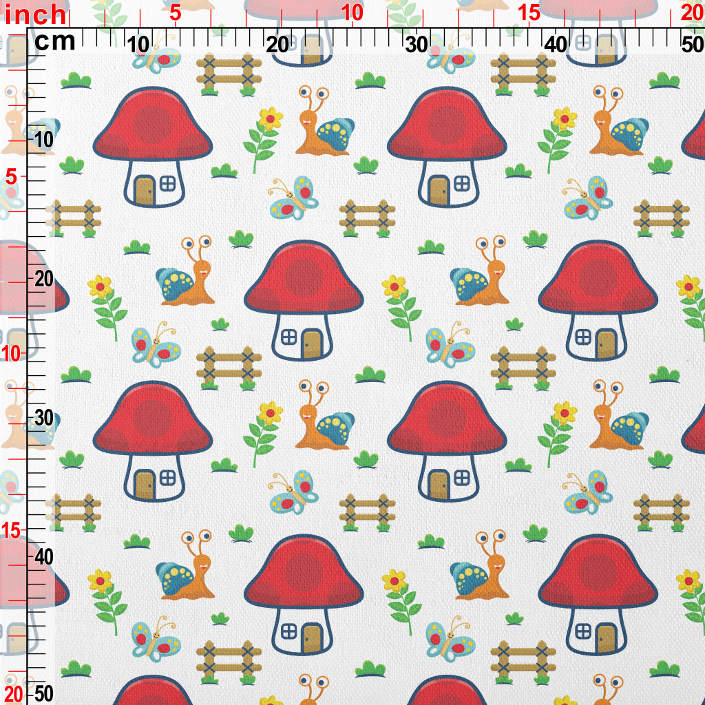 蝸牛與蝴蝶大蘑菇竹節麻(幅寬150公分)