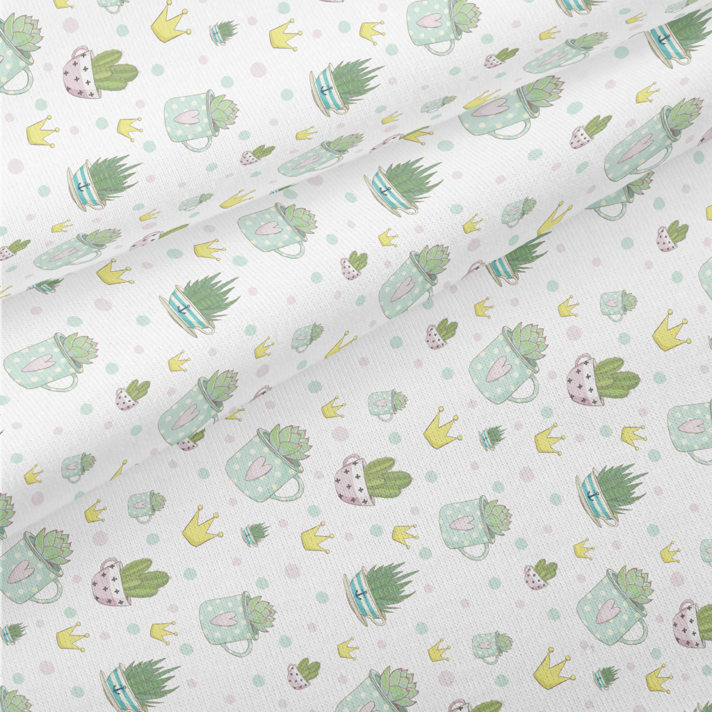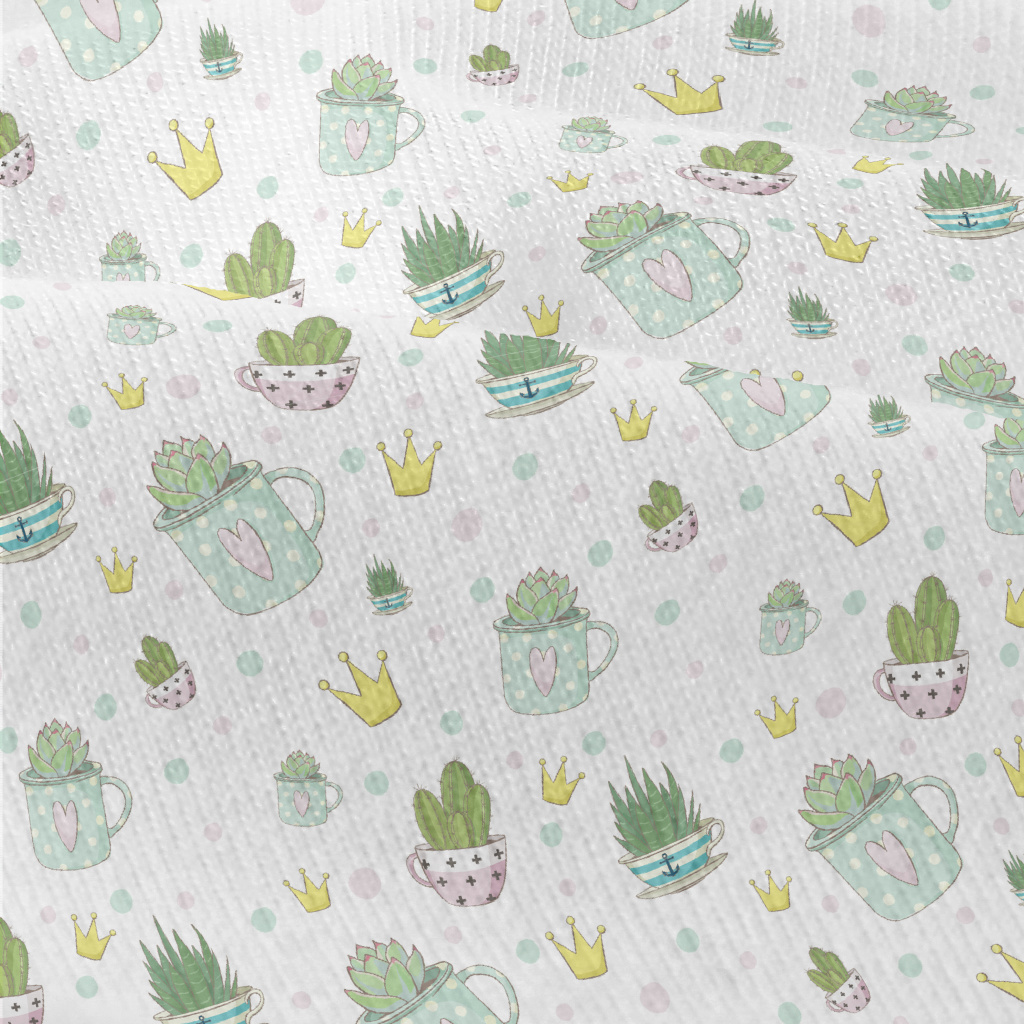 皇冠與多肉植物仿棉布(幅寬150公分)