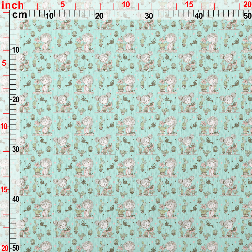 女孩種植仙人掌仿棉布(幅寬150公分)