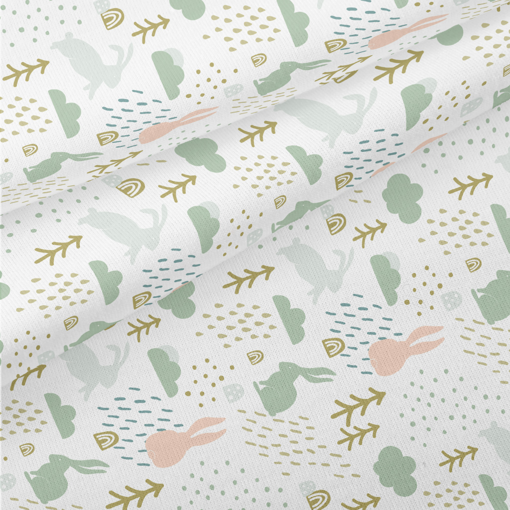 玩耍兔子剪影仿棉布(幅寬150公分)
