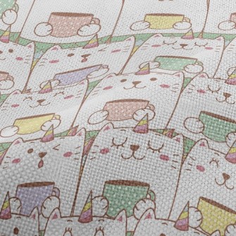 捧著咖啡的貓仿棉布(幅寬150公分)