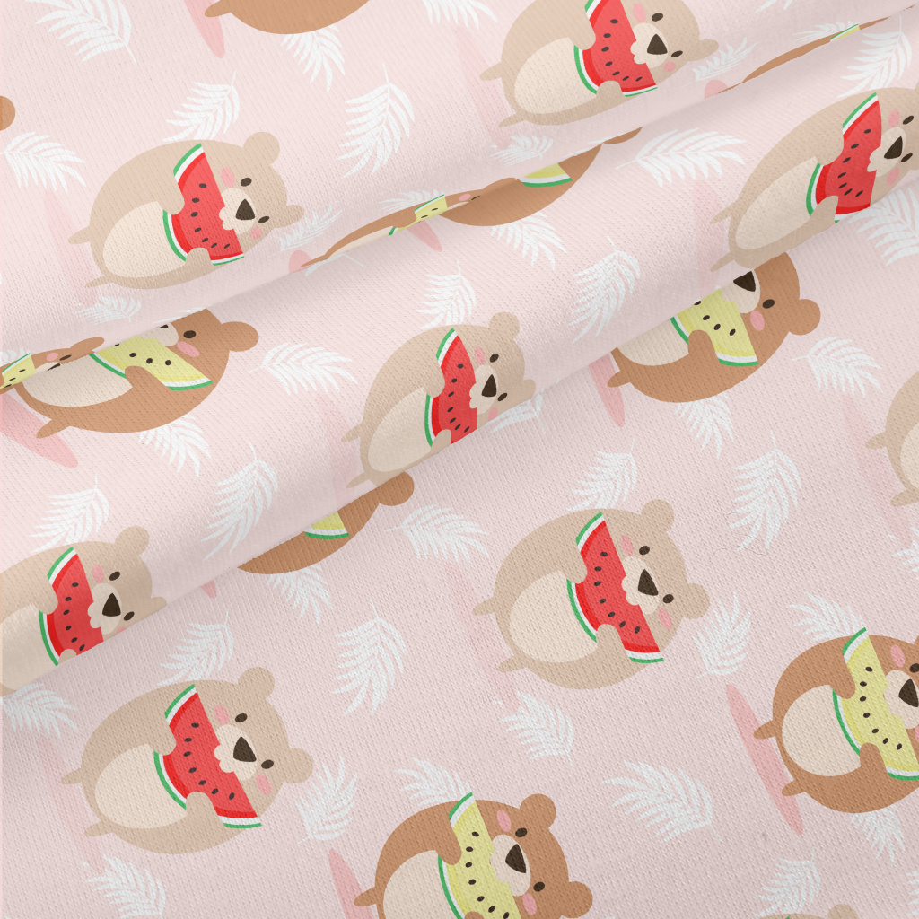 開心吃西瓜熊熊仿棉布(幅寬150公分)