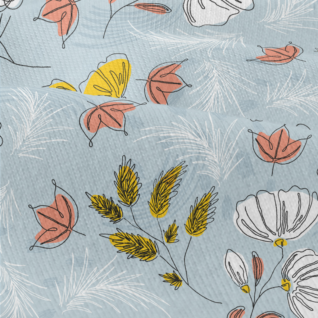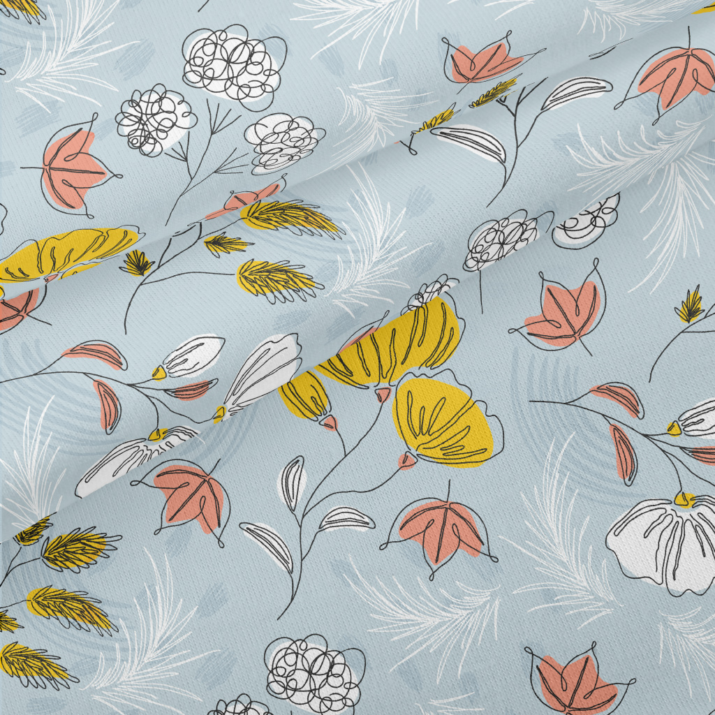 線條勾勒花朵仿棉布(幅寬150公分)
