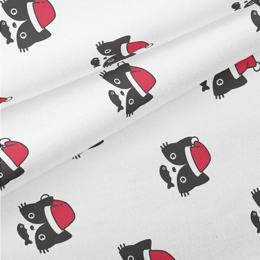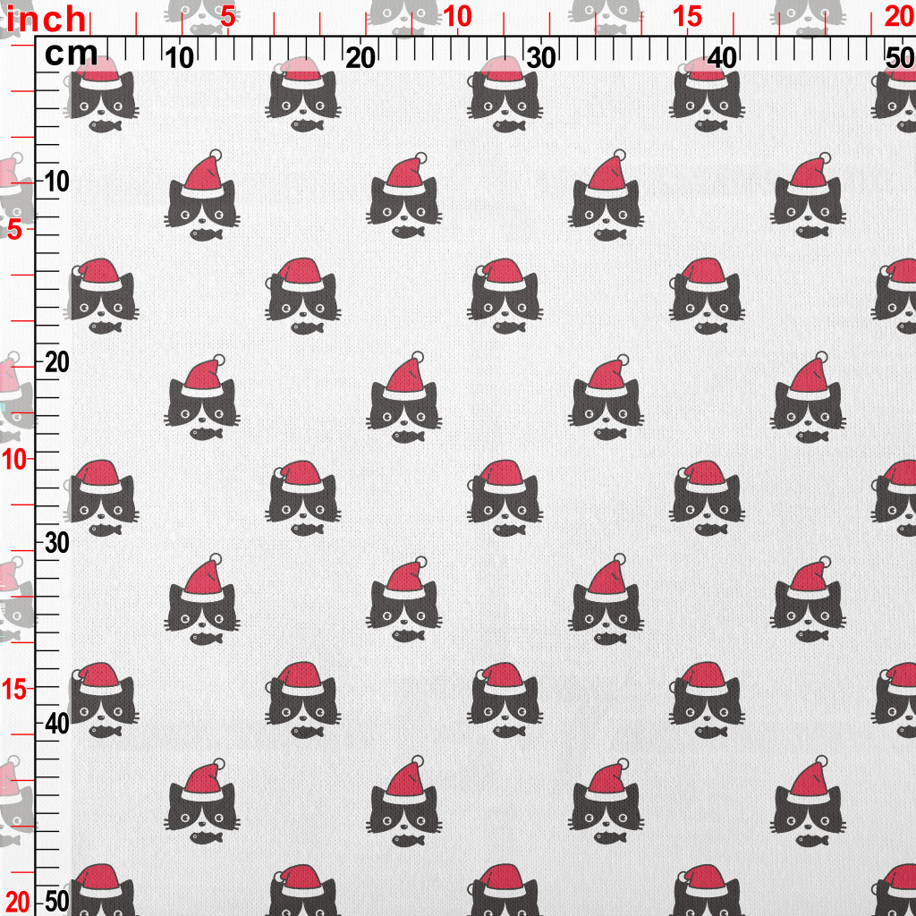 魚大餐聖誕小貓仿棉布(幅寬150公分)