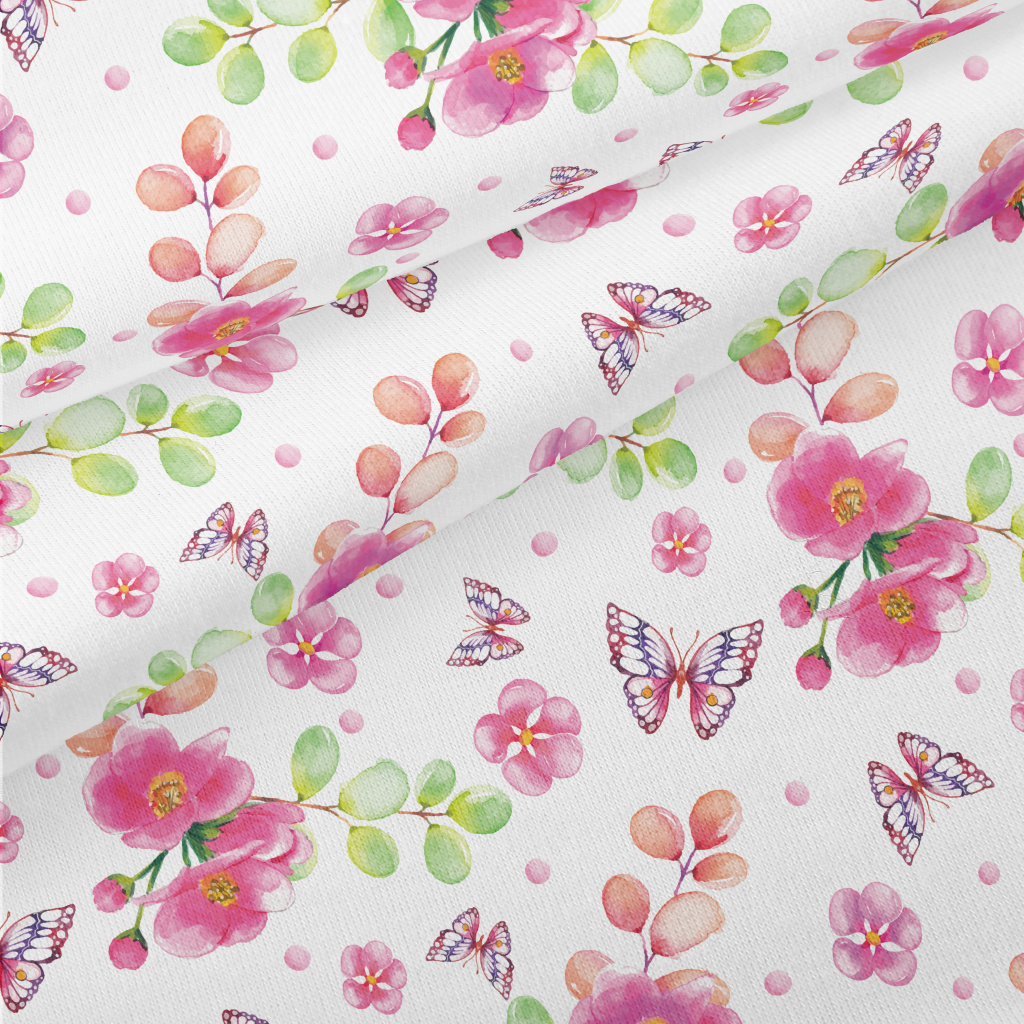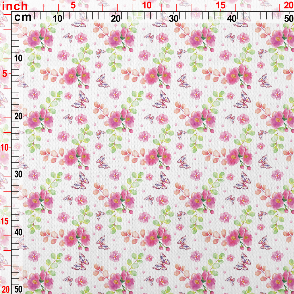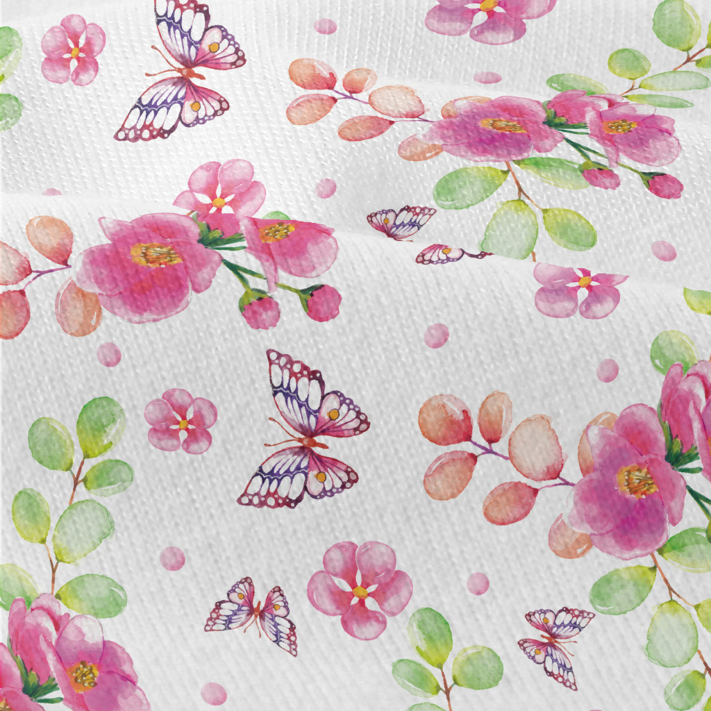 蝴蝶與紅花仿棉布(幅寬150公分)