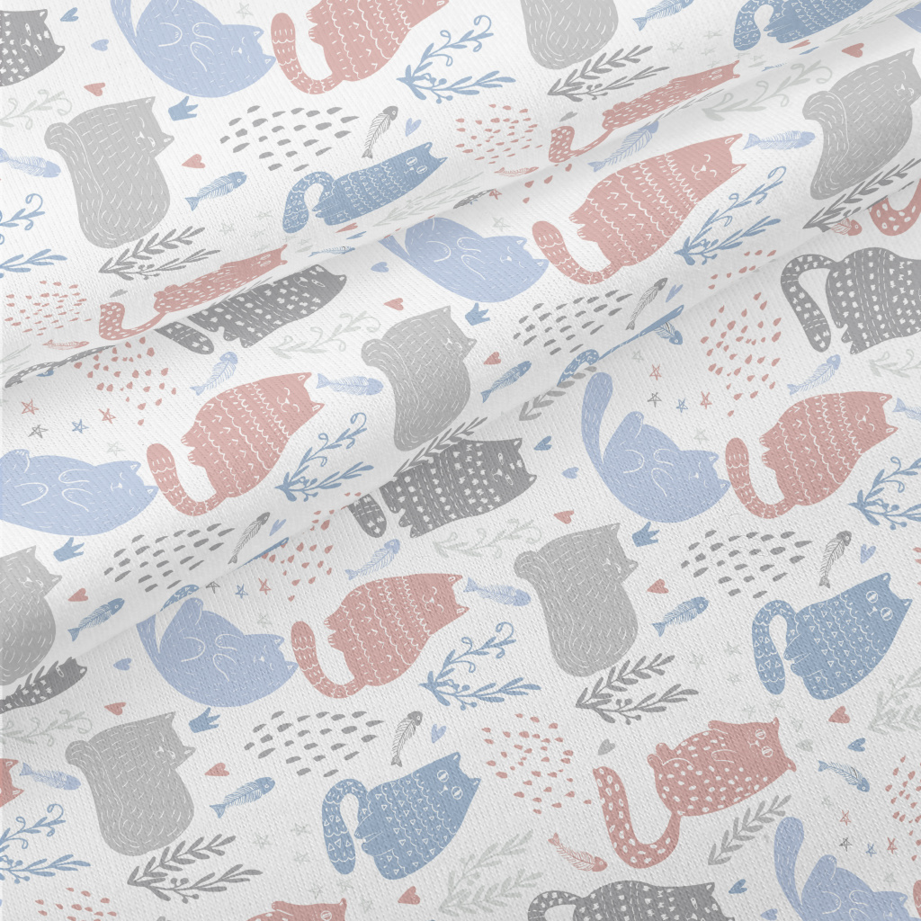 慵懶圖騰貓咪仿棉布(幅寬150公分)
