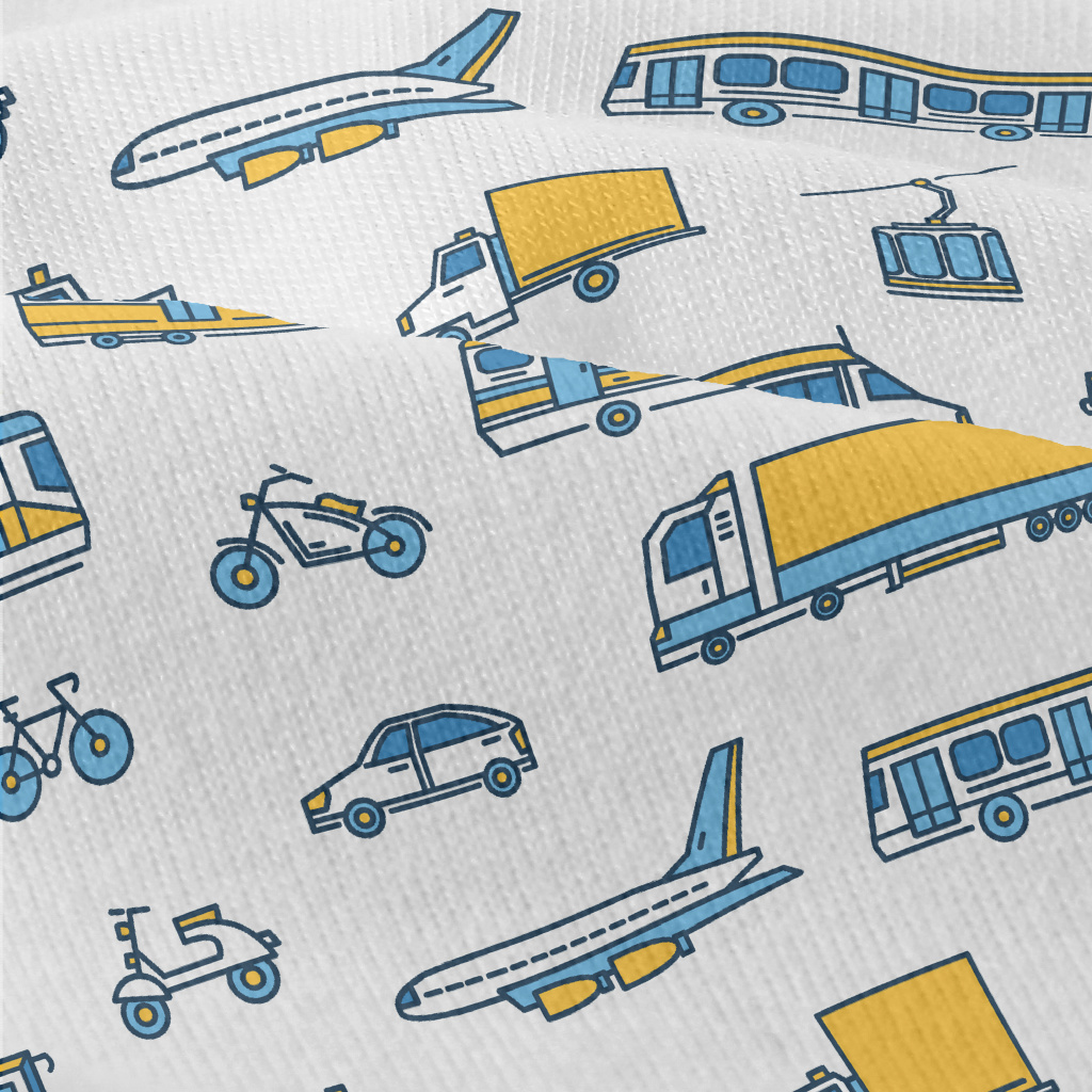 簡單線條船電車飛機仿棉布(幅寬150公分)