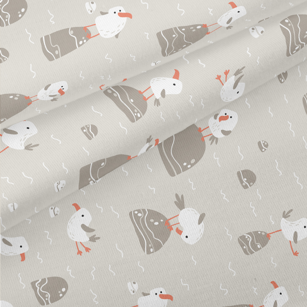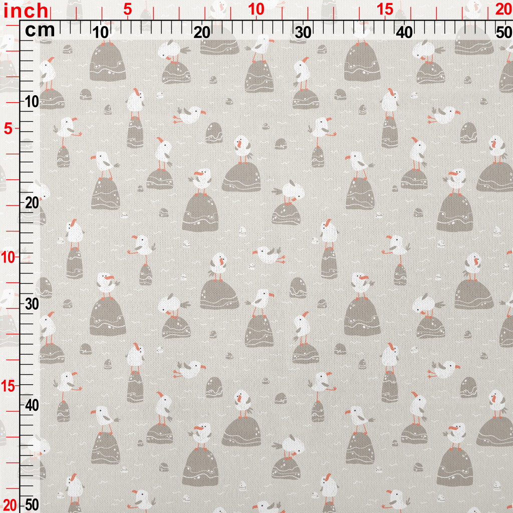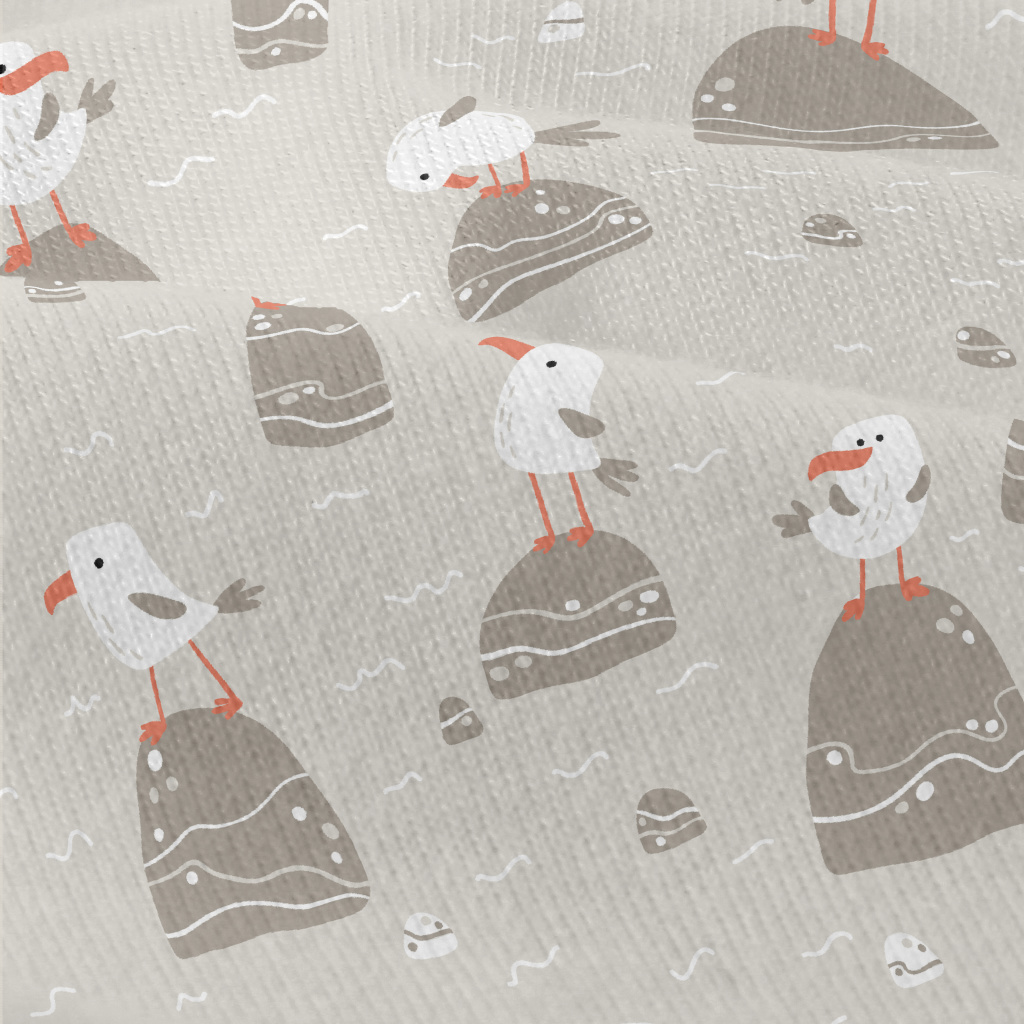 海鷗在石頭上休息仿棉布(幅寬150公分)