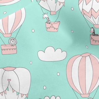 動物搭乘夢幻熱氣球仿棉布(幅寬150公分)