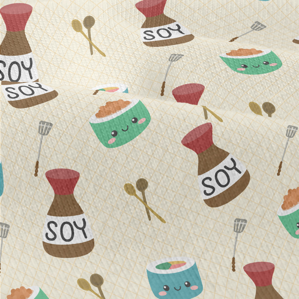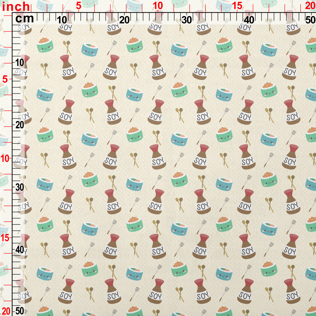 可愛壽司與醬料仿棉布(幅寬150公分)
