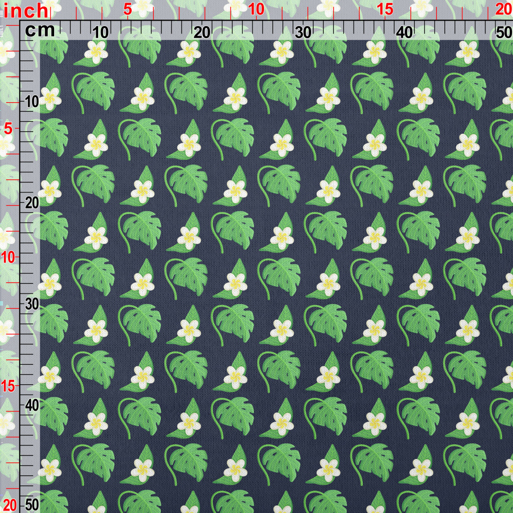 雞蛋花熱帶葉子仿棉布(幅寬150公分)