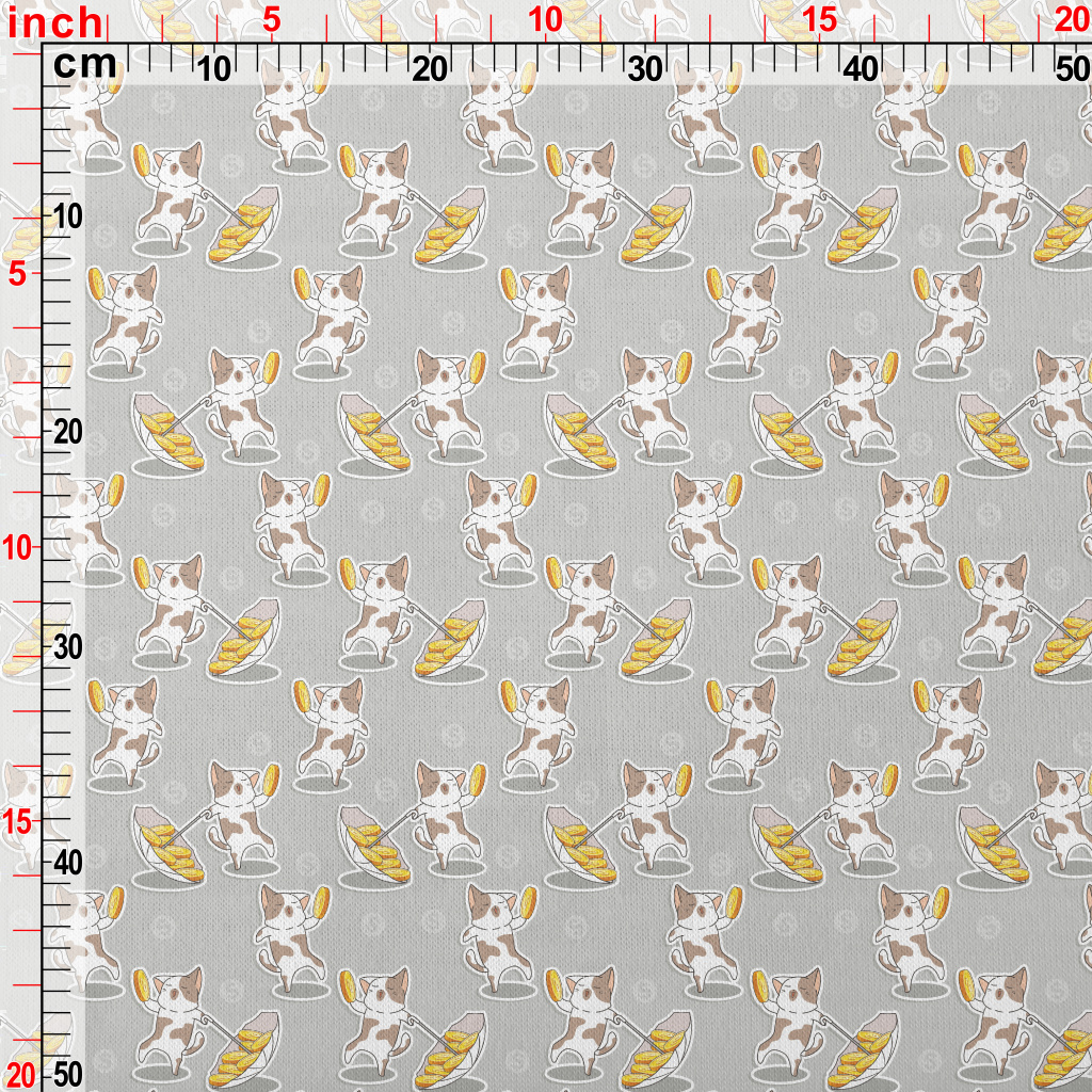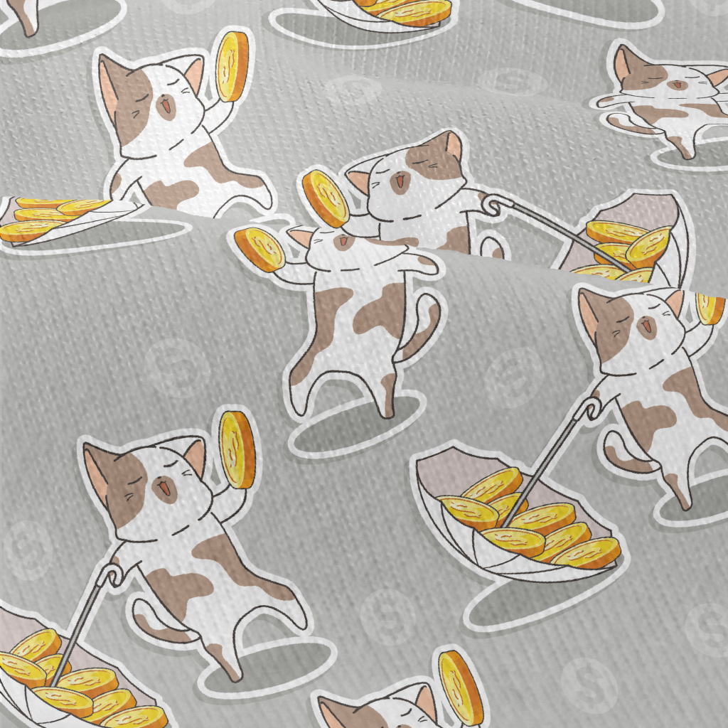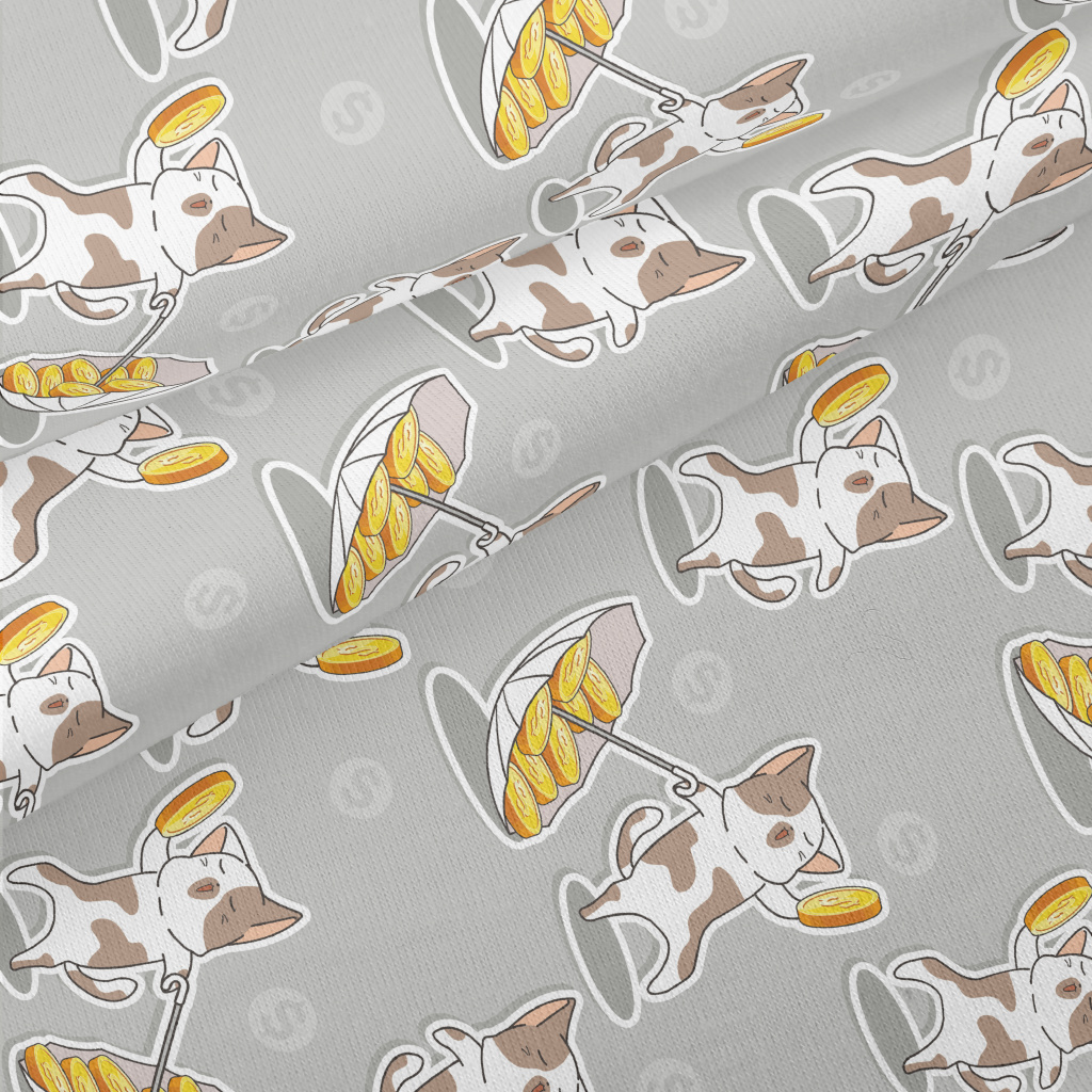 跳舞錢幣貓咪仿棉布(幅寬150公分)