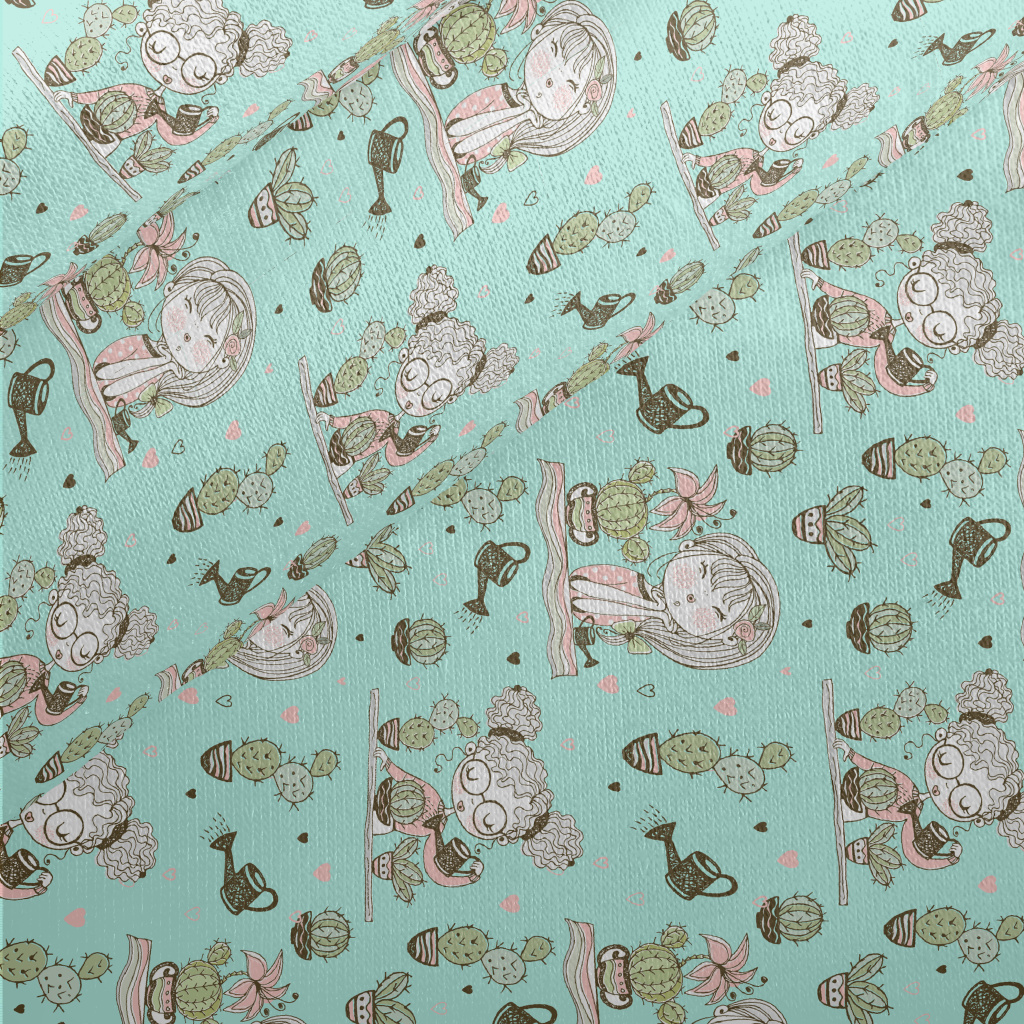 女孩種植仙人掌刷毛布(幅寬150公分)