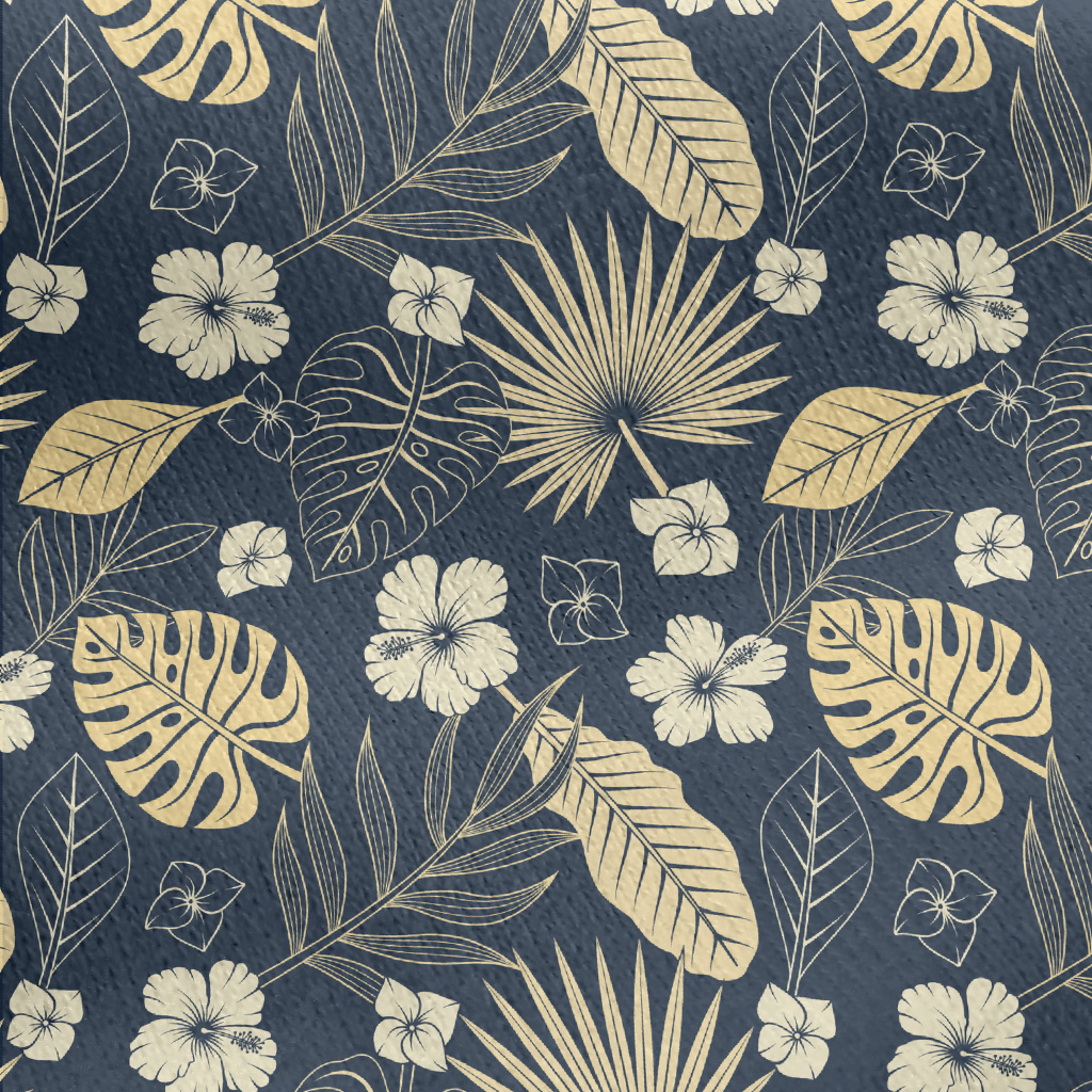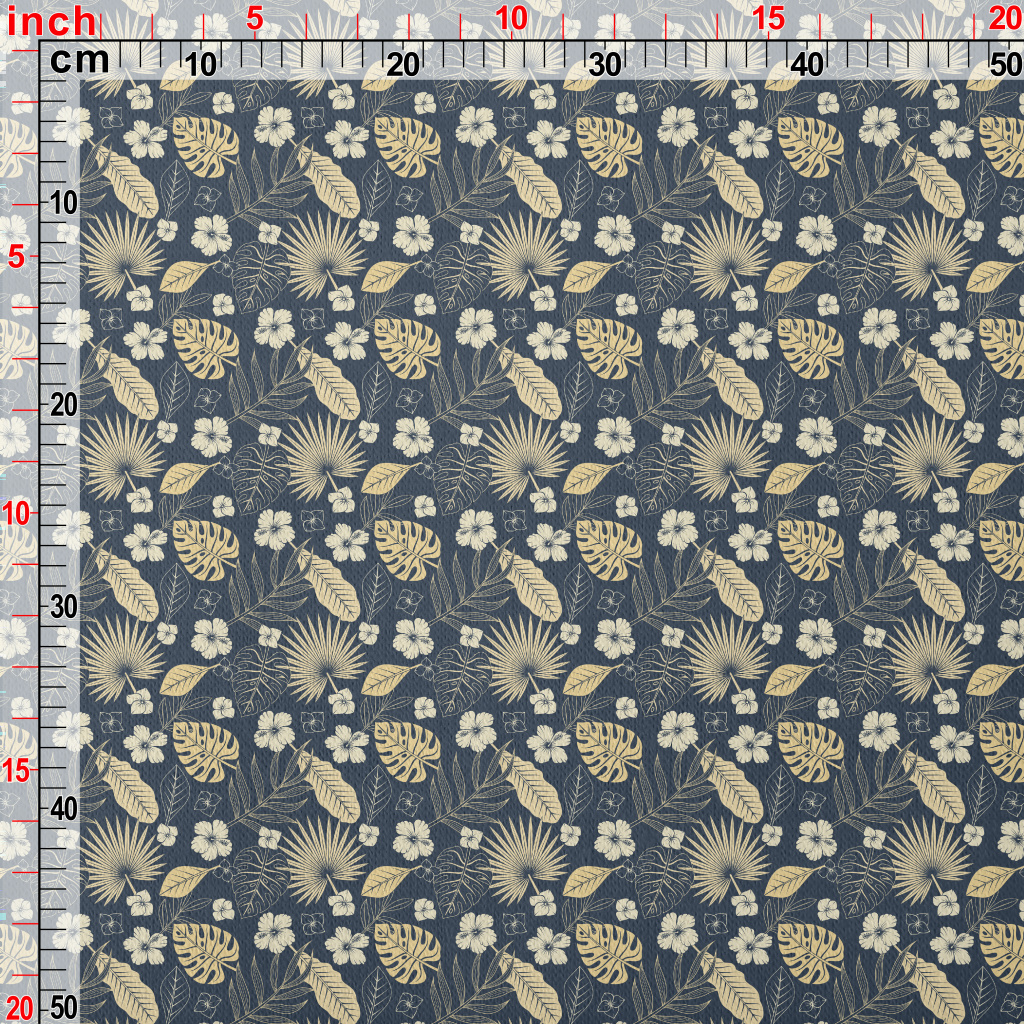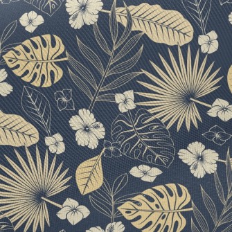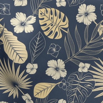 優雅熱帶樹葉花朵刷毛布(幅寬150公分)