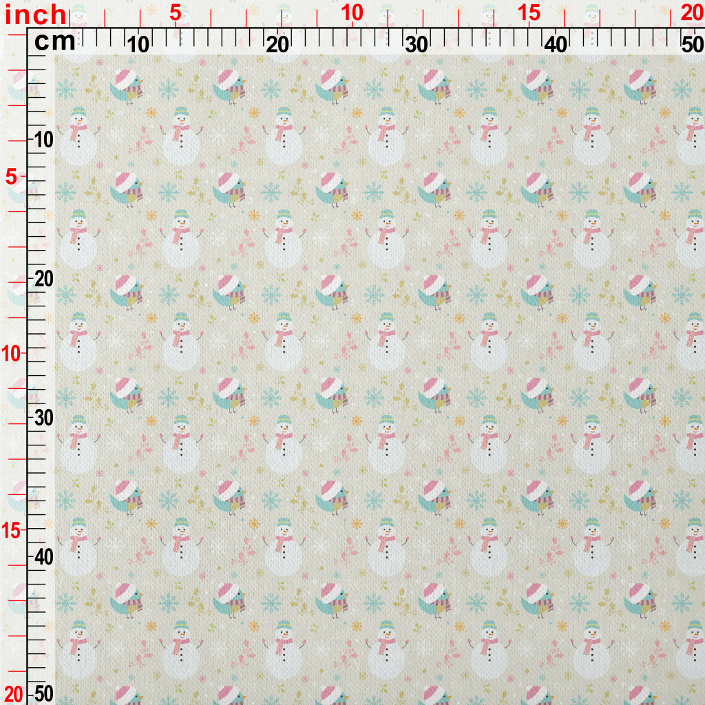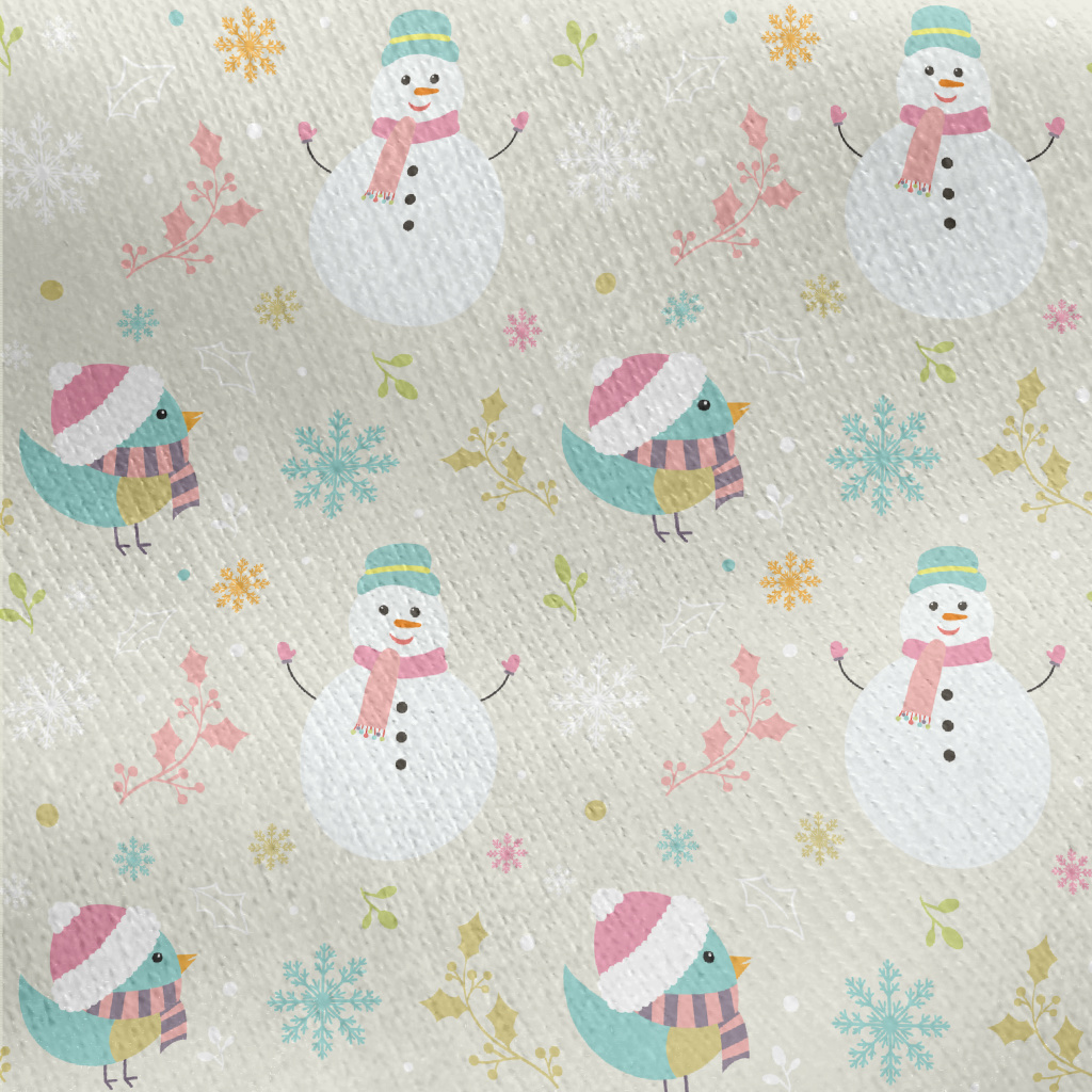聖誕小鳥與雪人刷毛布(幅寬150公分)
