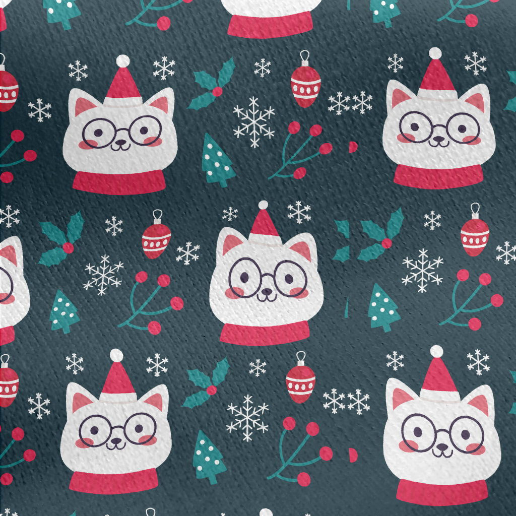 戴眼鏡聖誕貓刷毛布(幅寬150公分)