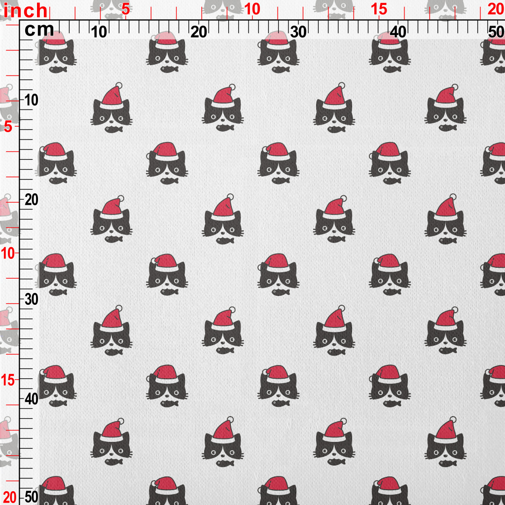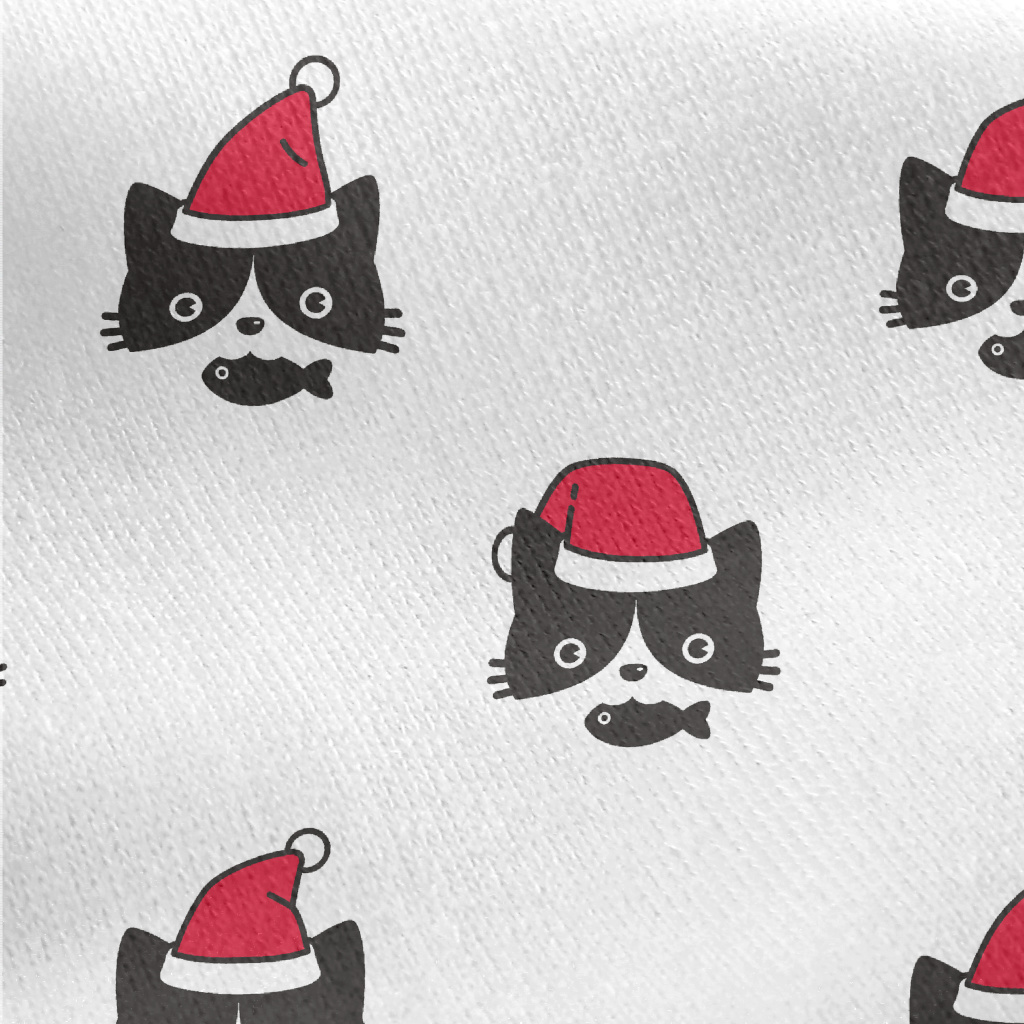 魚大餐聖誕小貓刷毛布(幅寬150公分)
