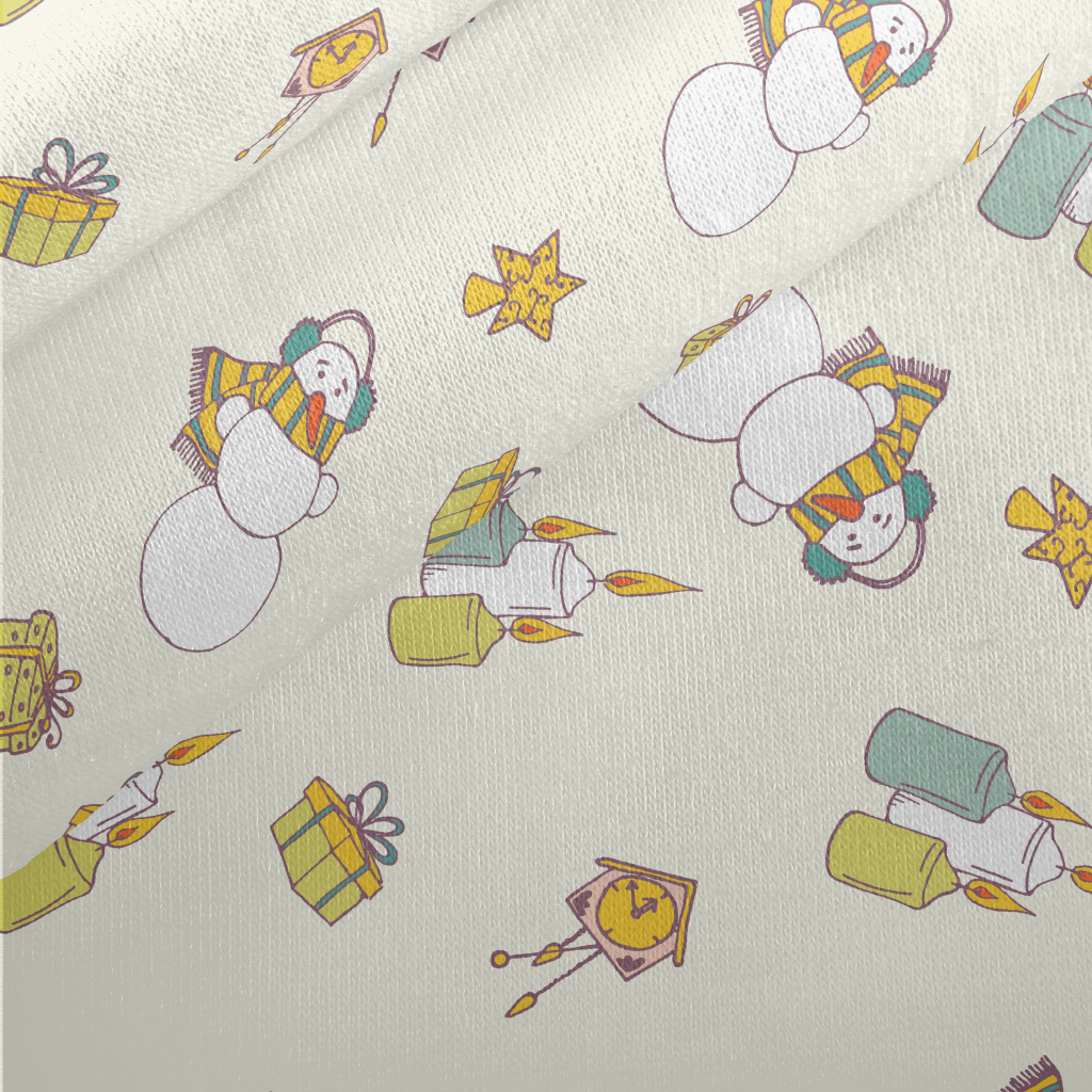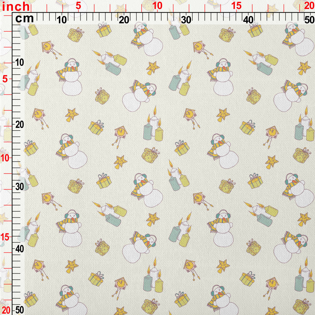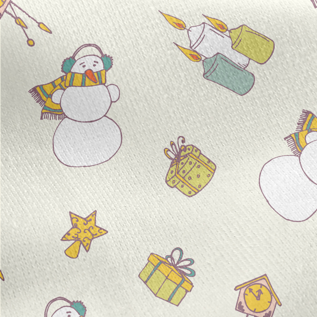 雪人禮物蠟燭刷毛布(幅寬150公分)
