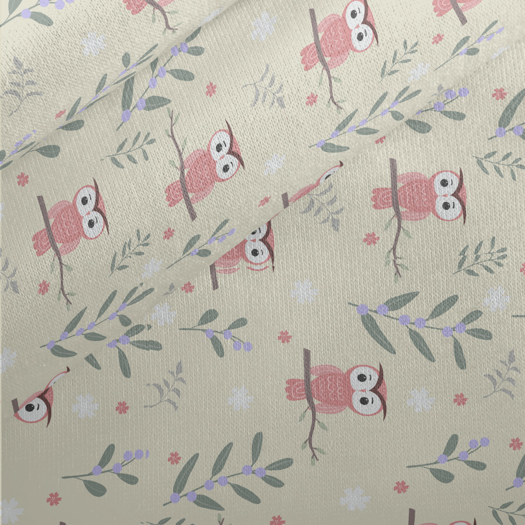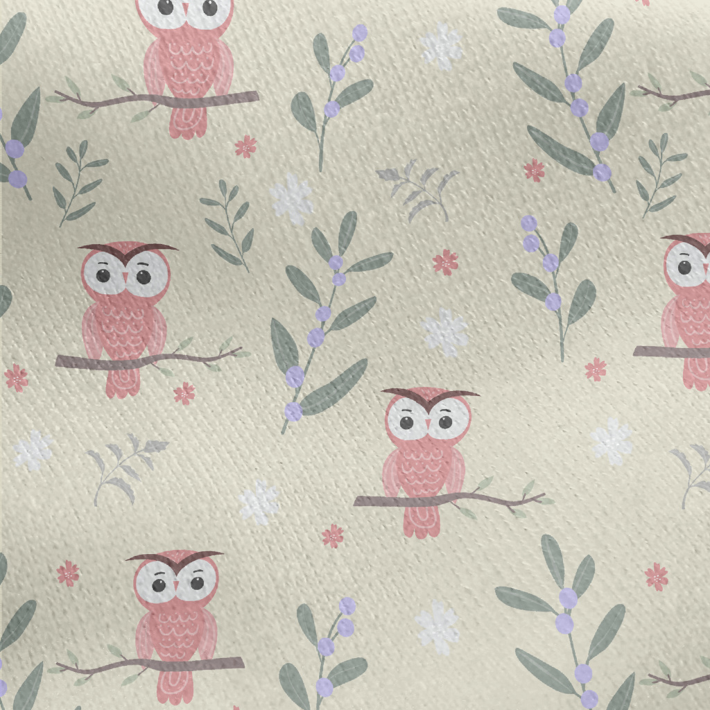樹上發呆貓頭鷹刷毛布(幅寬150公分)