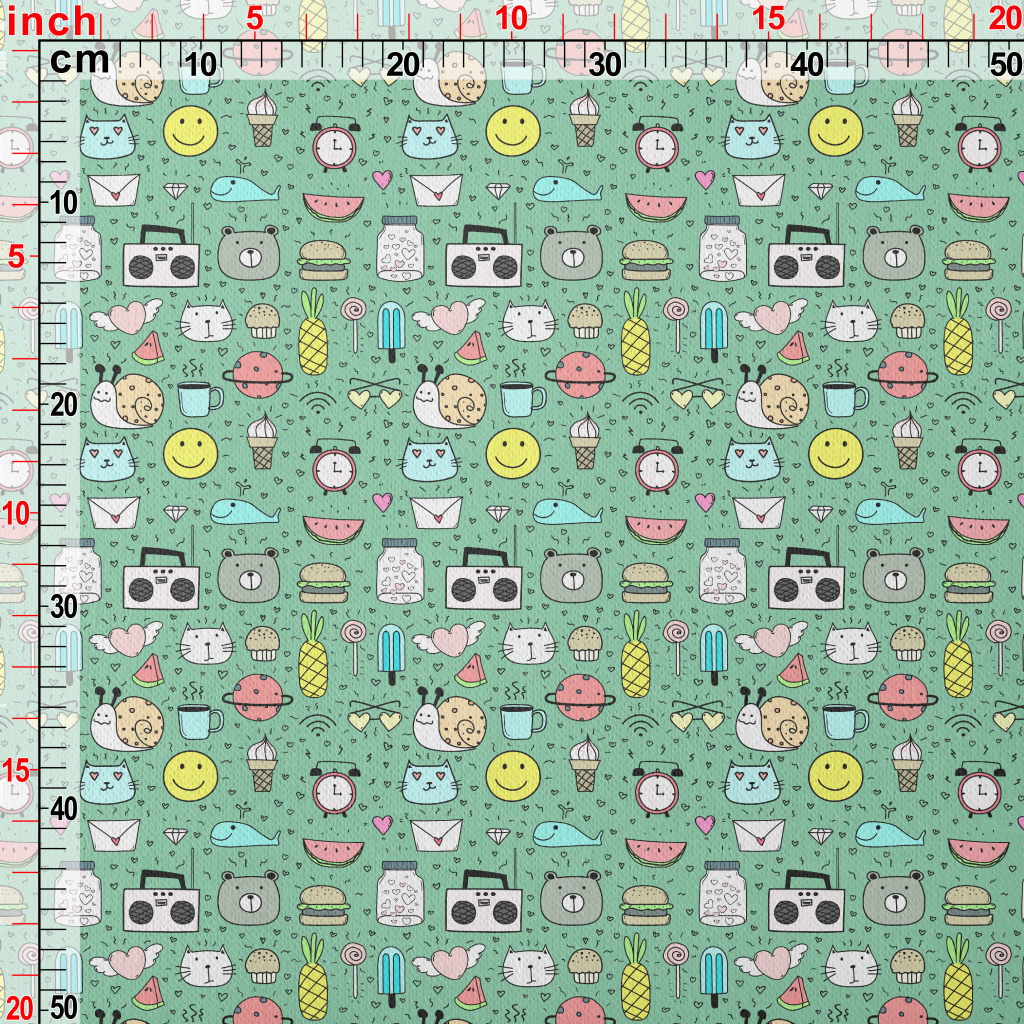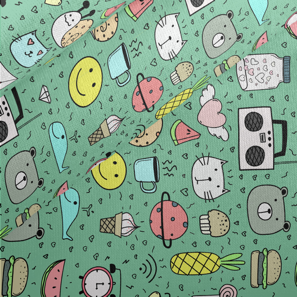 蝸牛貓咪熊熊塗鴉刷毛布(幅寬150公分)