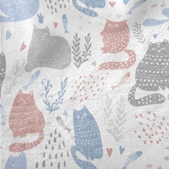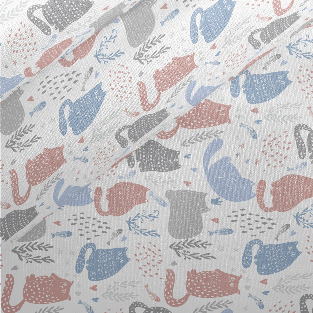 慵懶圖騰貓咪刷毛布(幅寬150公分)