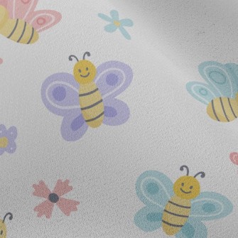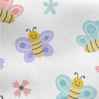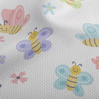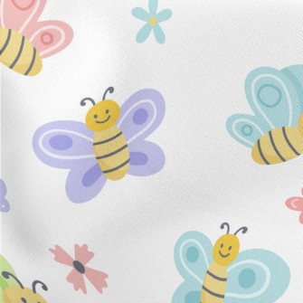 可愛蜜蜂與蝴蝶刷毛布(幅寬150公分)
