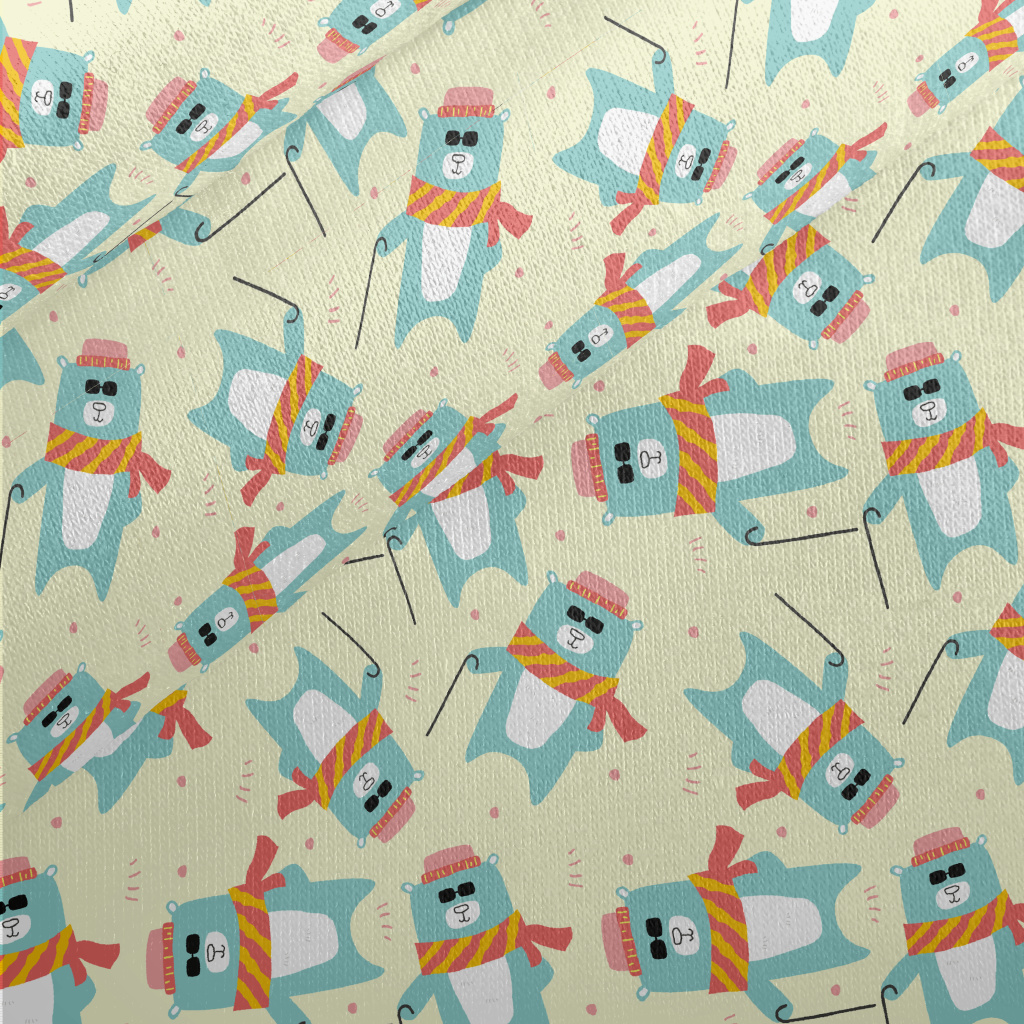 搞笑墨鏡拐杖熊刷毛布(幅寬150公分)