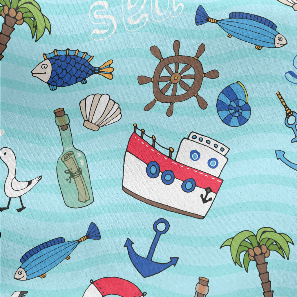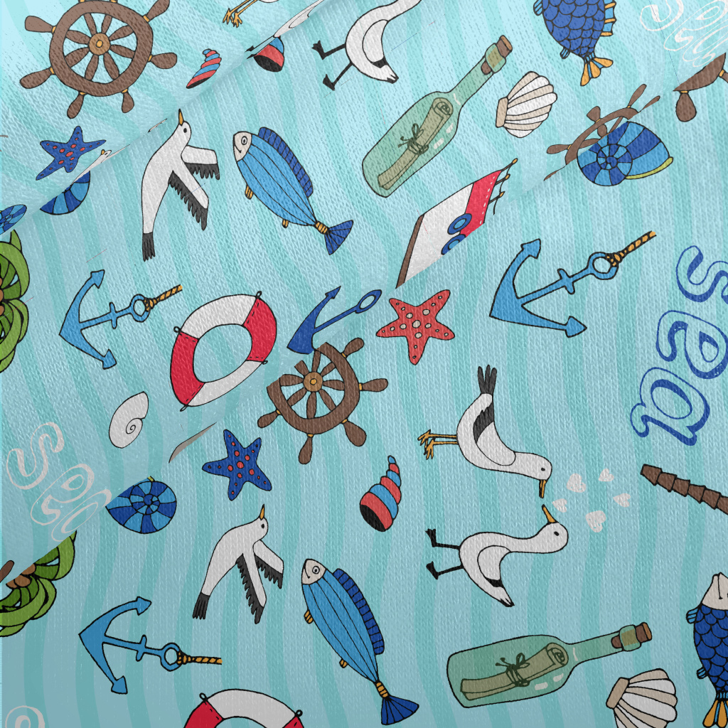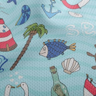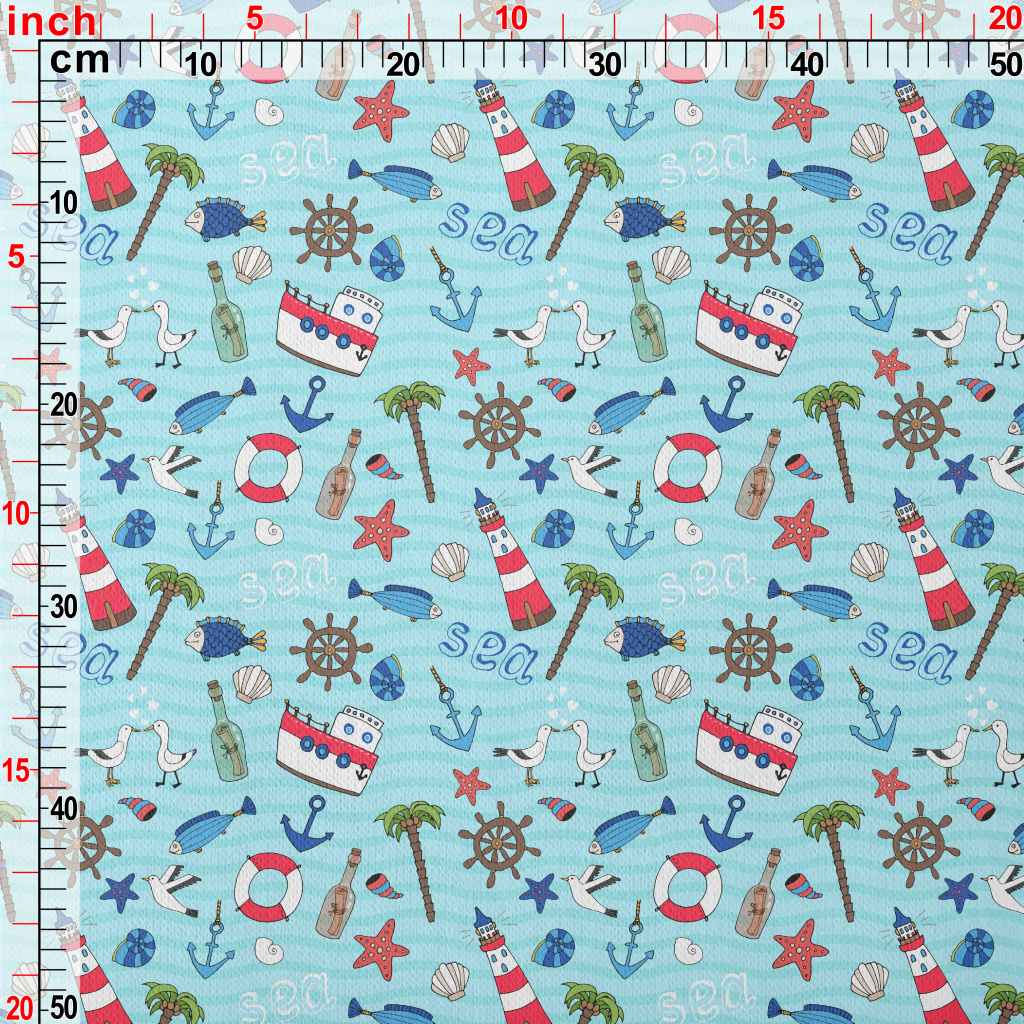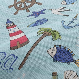 帆船燈塔海鷗魚刷毛布(幅寬150公分)