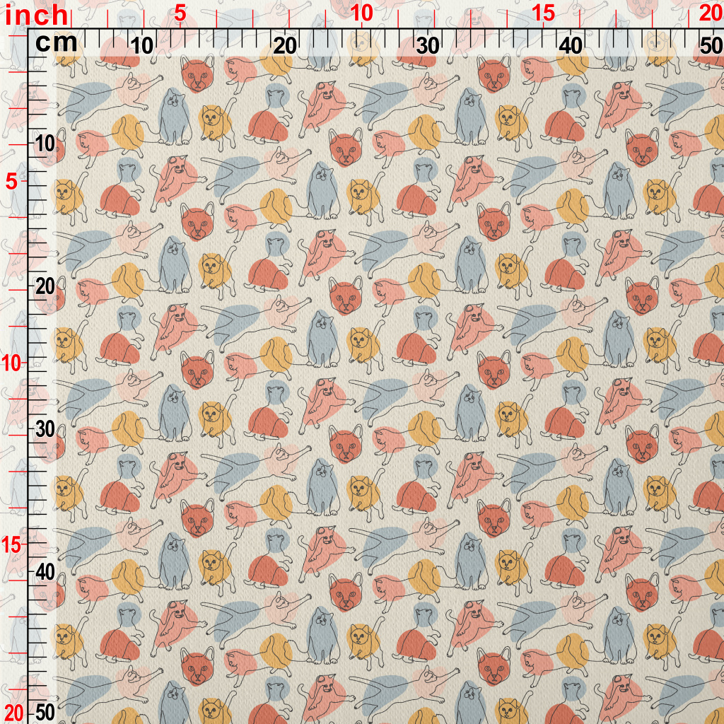 繽紛色塊線條貓刷毛布(幅寬150公分)
