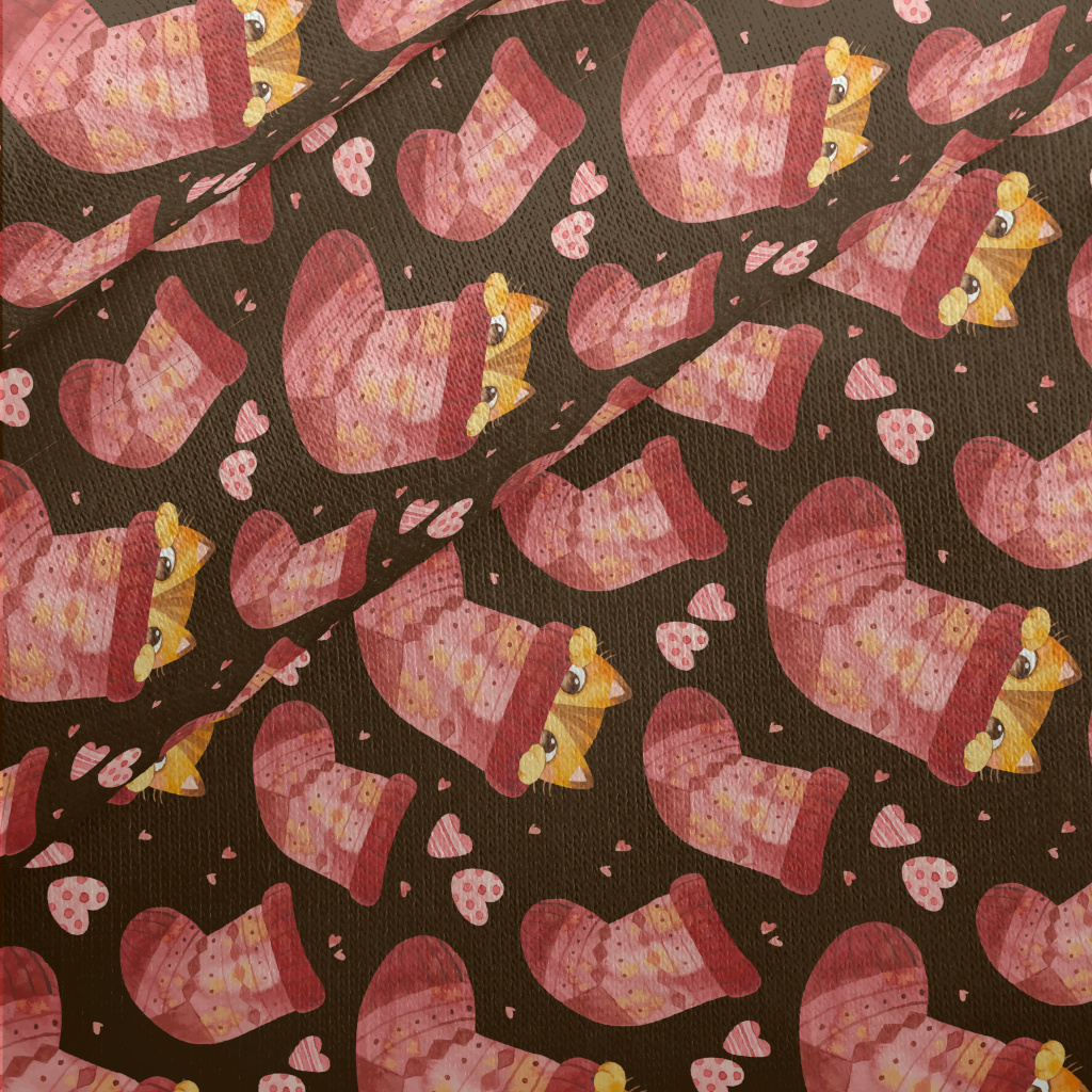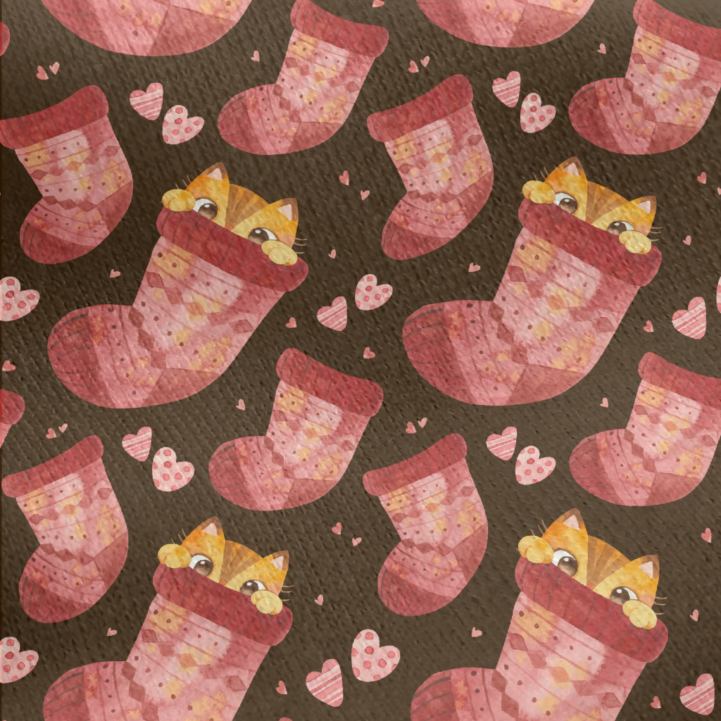 可愛小貓聖誕襪刷毛布(幅寬150公分)