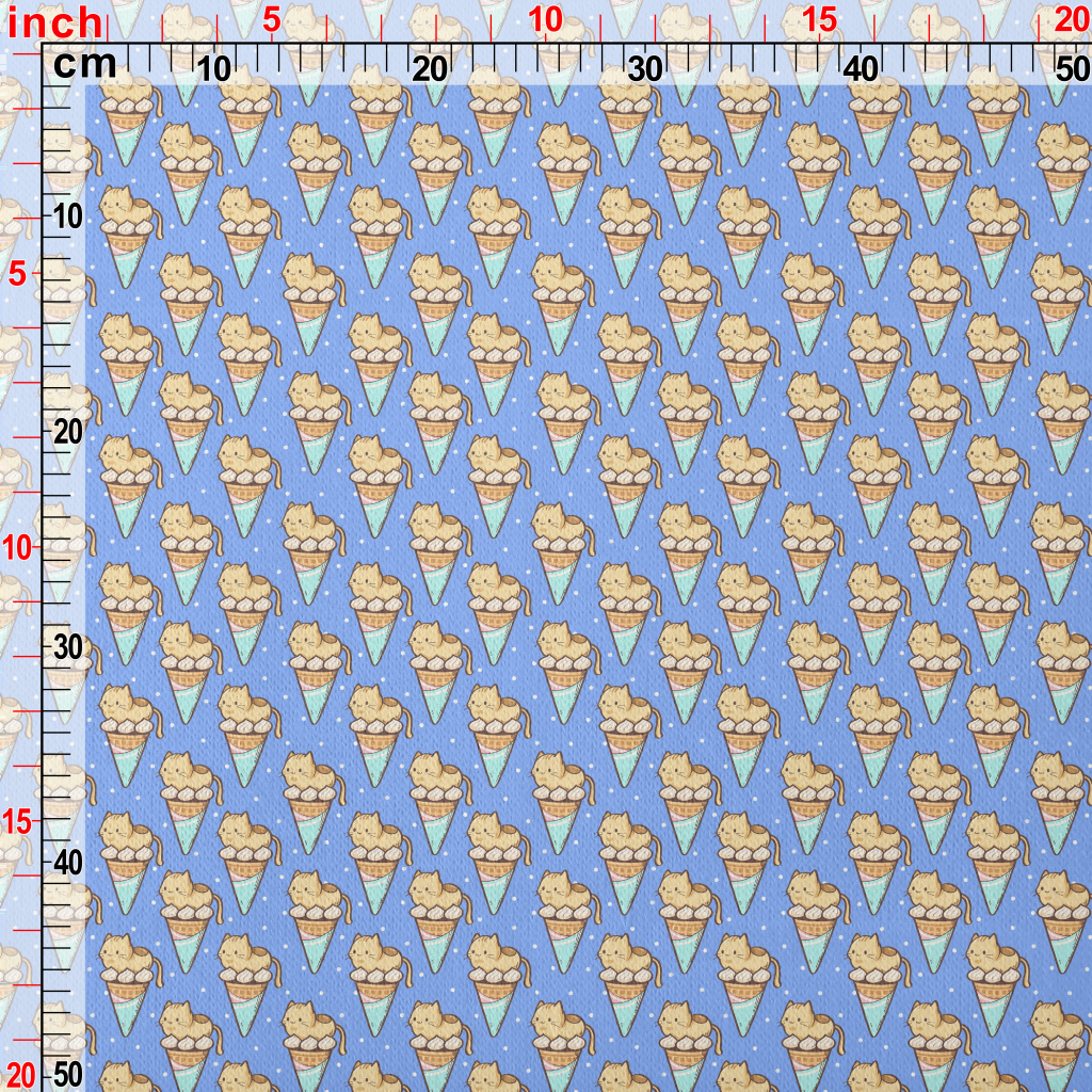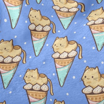 甜筒冰棒與小貓刷毛布(幅寬150公分)