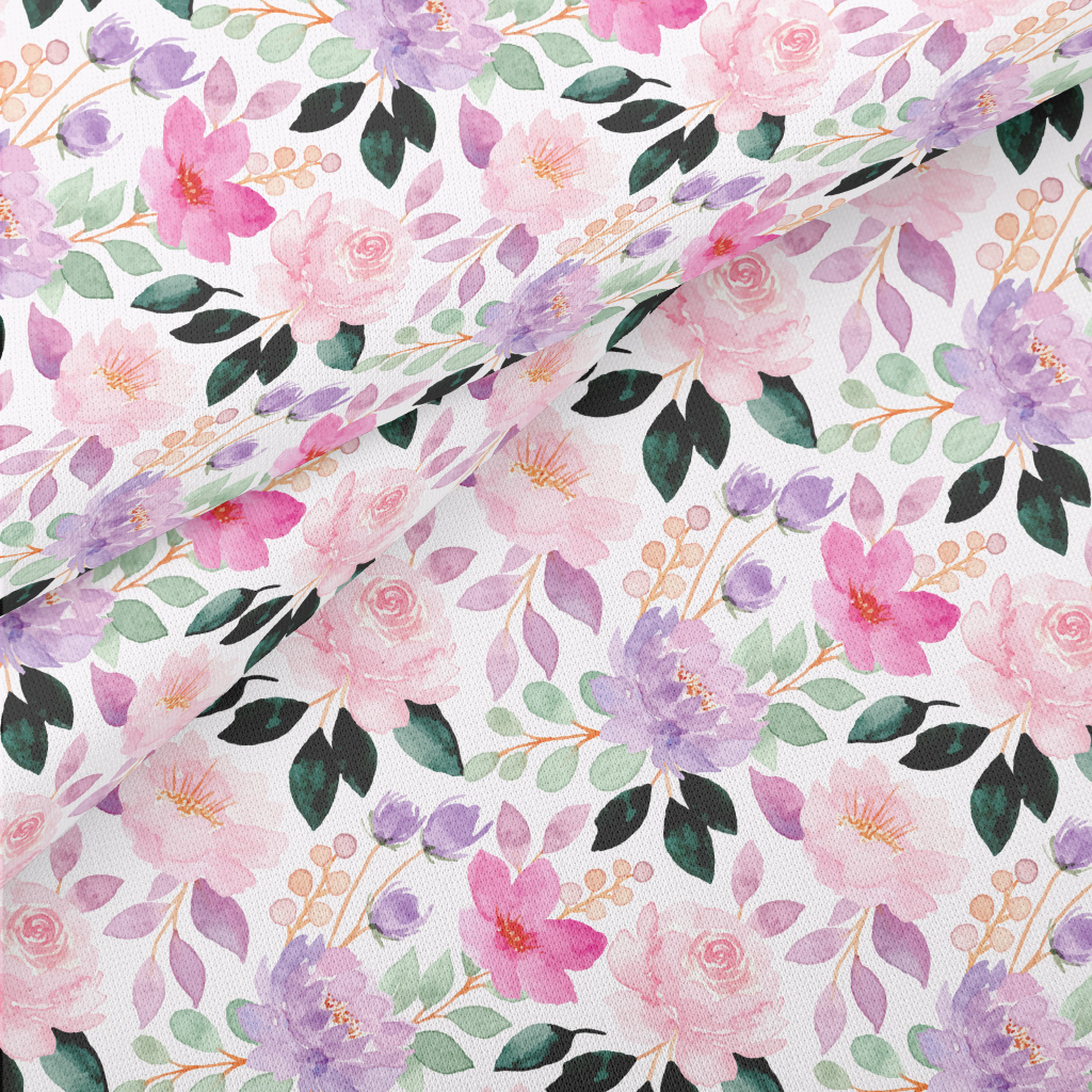 柔美粉紅紫色花薄棉布(幅寬150公分)