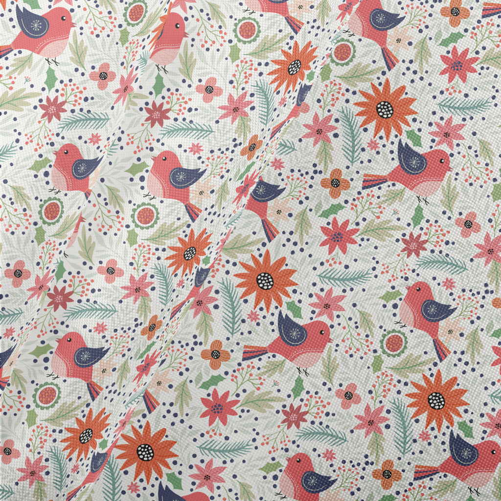 粉紅色鳥和花春亞紡(幅寬160公分)