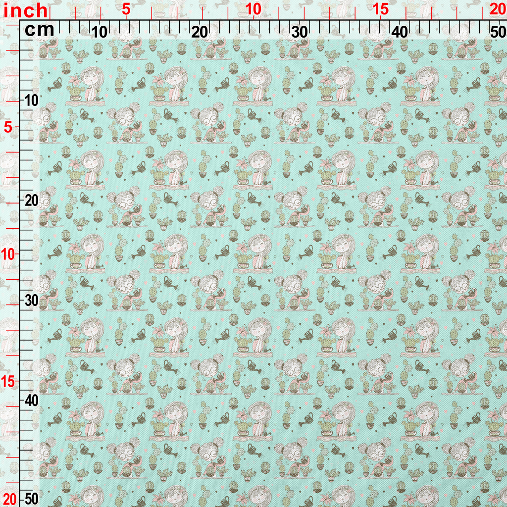女孩種植仙人掌春亞紡(幅寬160公分)