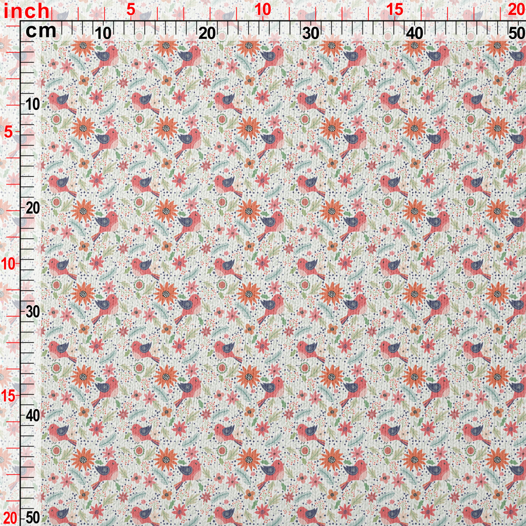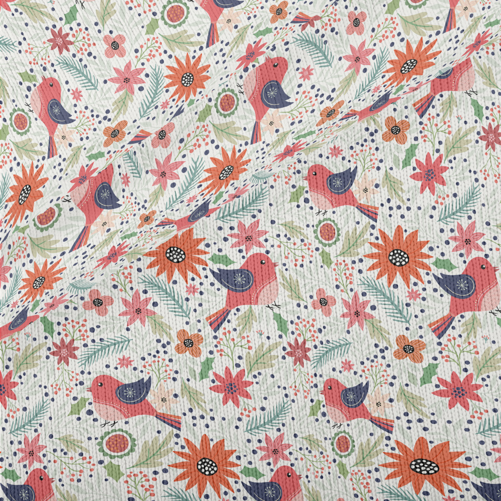 粉紅色鳥和花仿毛衣布(幅寬150公分)