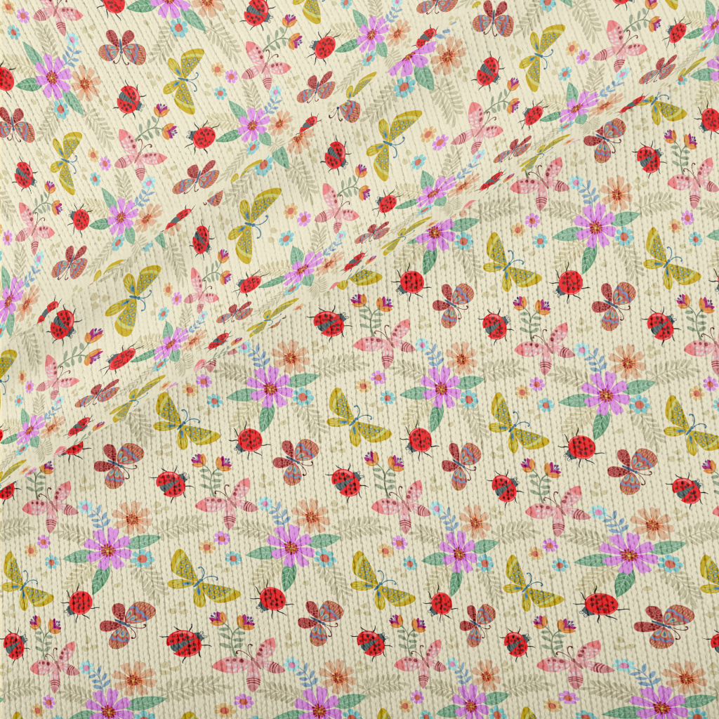 五顏六色花和蝴蝶仿毛衣布(幅寬150公分)