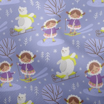 滑雪女孩和熊仿毛衣布(幅寬150公分)