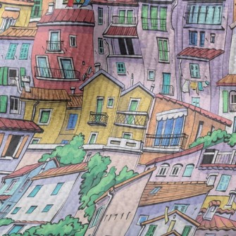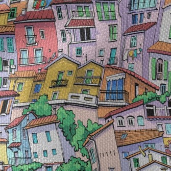 擁擠繽紛房子仿毛衣布(幅寬150公分)