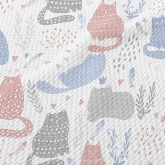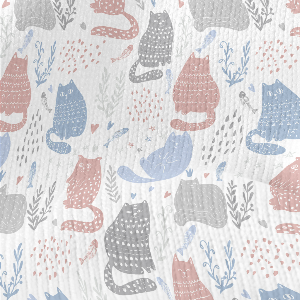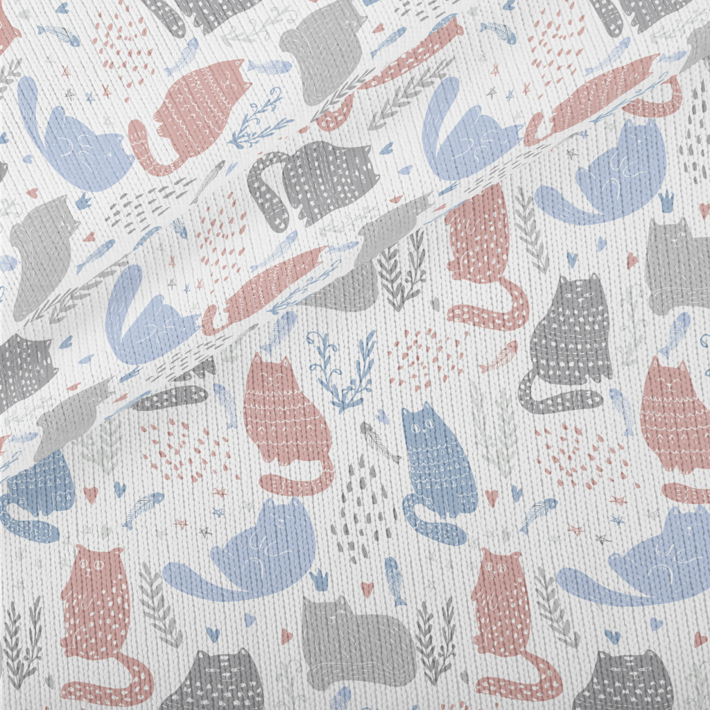 慵懶圖騰貓咪仿毛衣布(幅寬150公分)