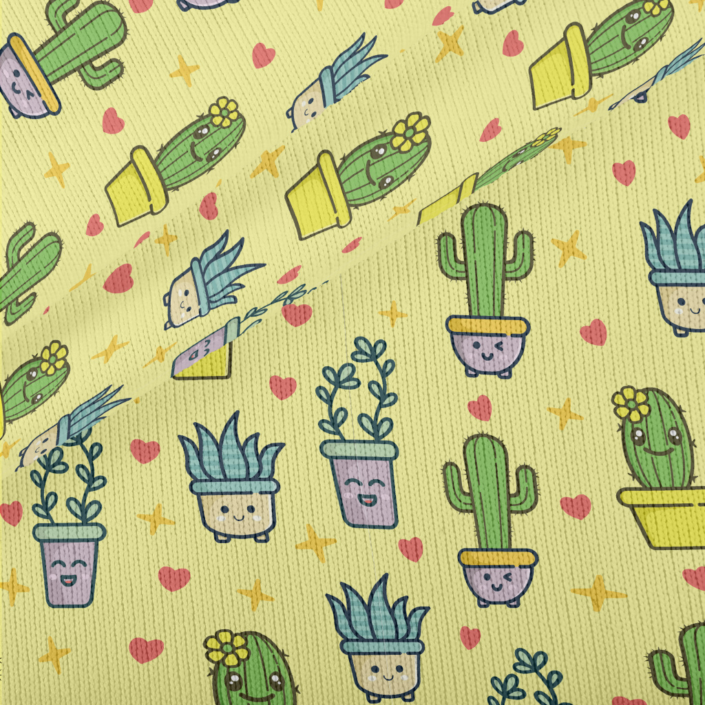 俏皮多肉小盆栽仿毛衣布(幅寬150公分)