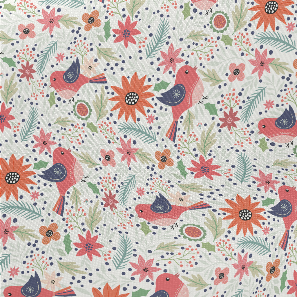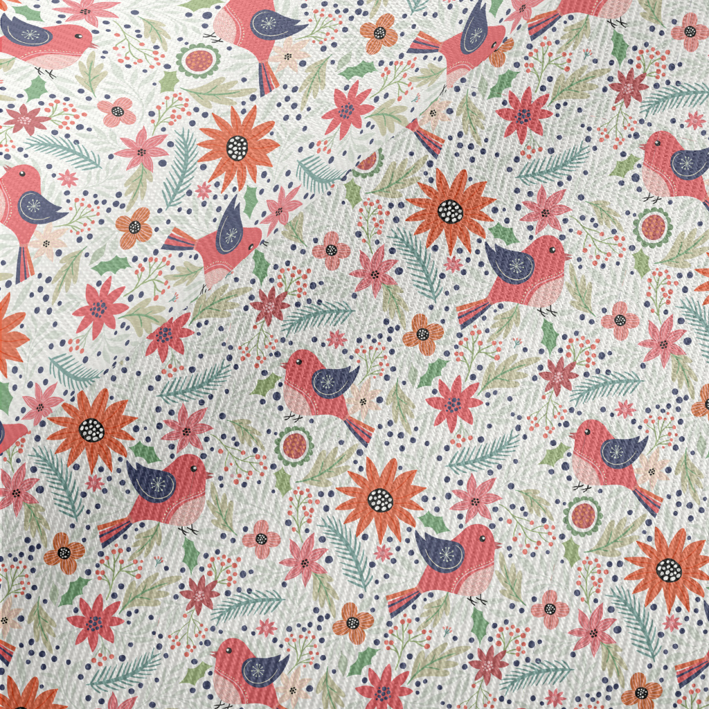 粉紅色鳥和花厚棉布(幅寬150公分)