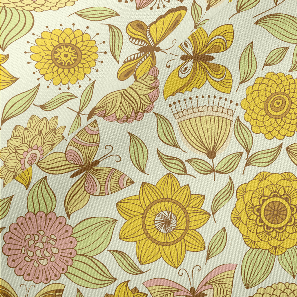 各樣花朵與蝴蝶厚棉布(幅寬150公分)