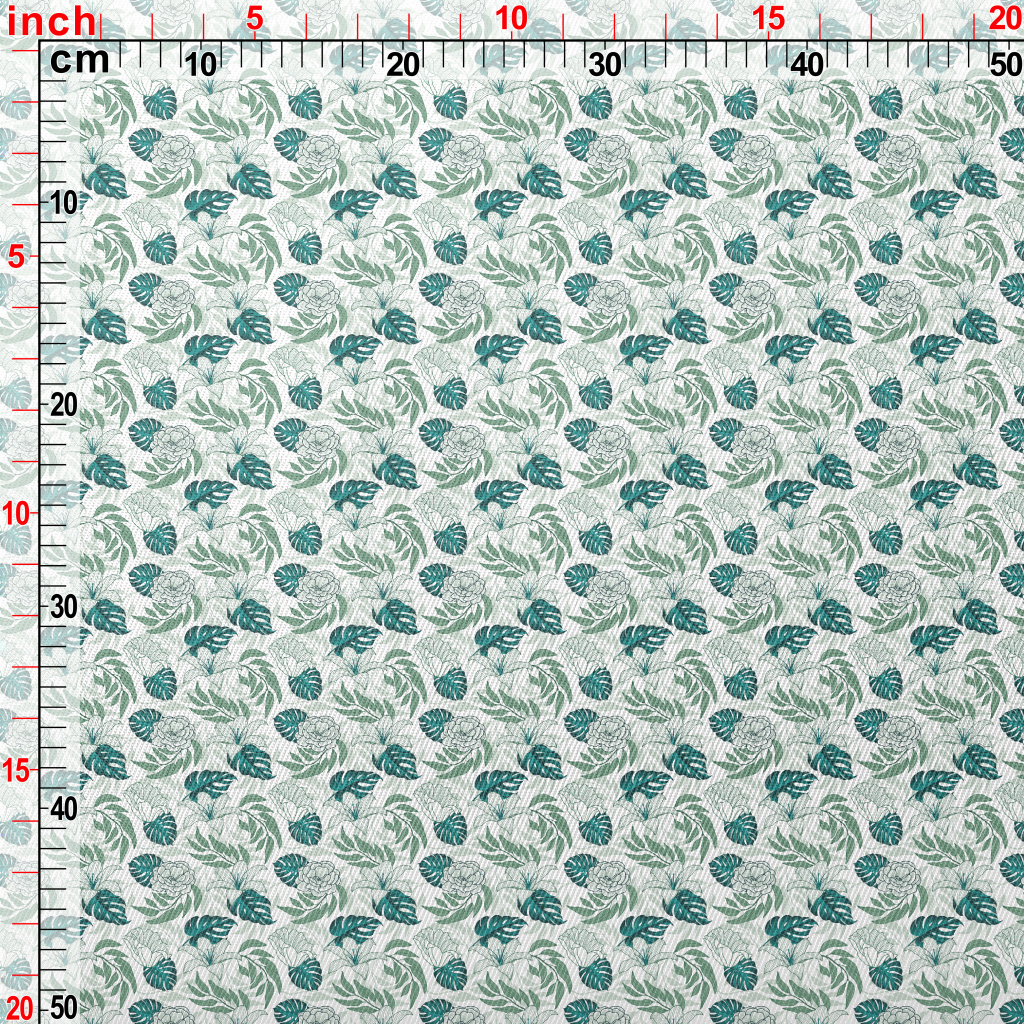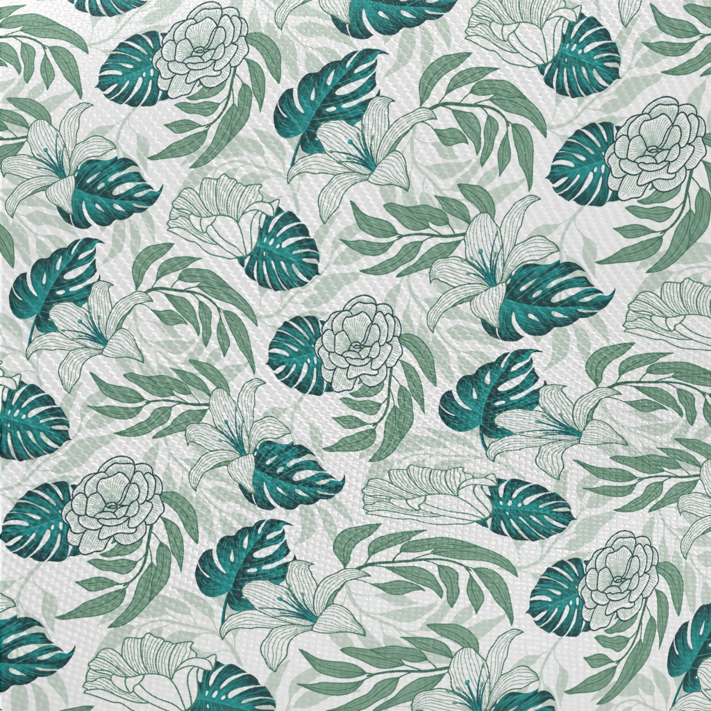 熱帶花朵與葉子厚棉布(幅寬150公分)
