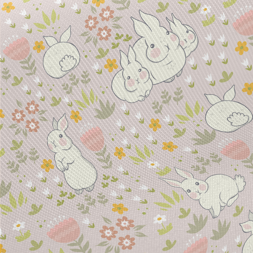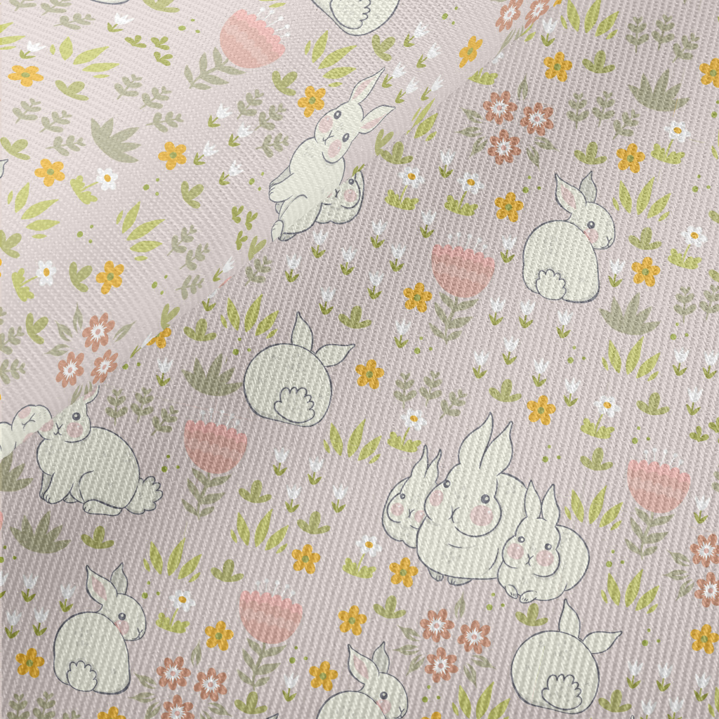 春天兔子家族厚棉布(幅寬150公分)