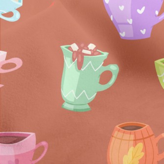 可愛造型杯子可可厚棉布(幅寬150公分)