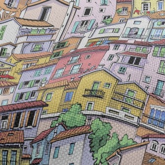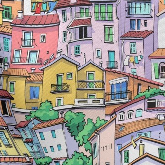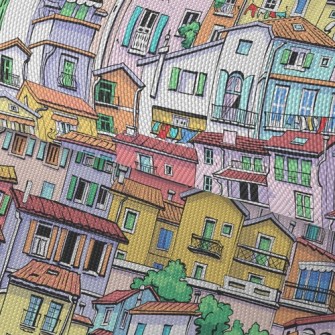 擁擠繽紛房子厚棉布(幅寬150公分)